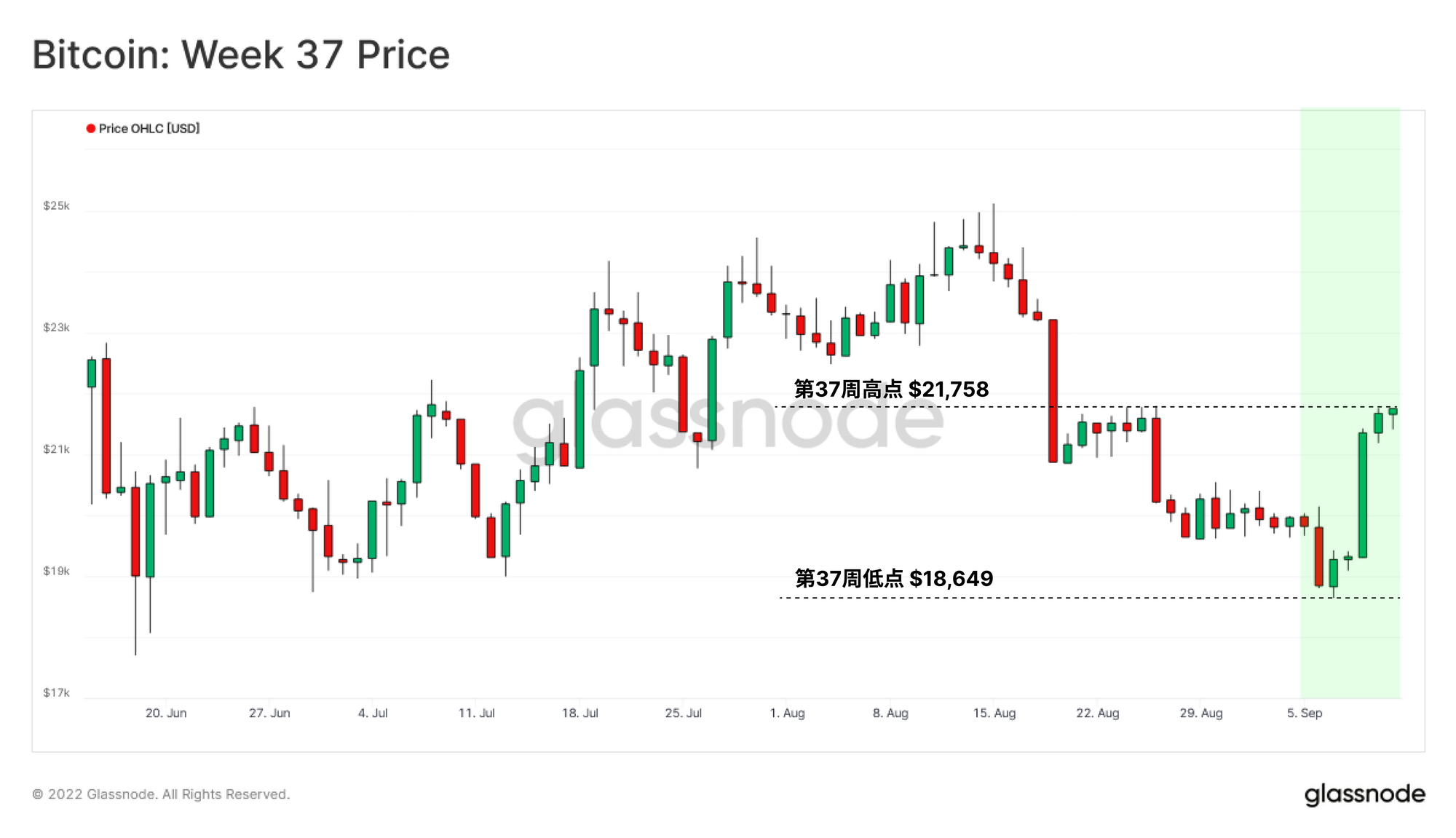 比特币市场经历了一次强有力的反弹,从熊市的第二低点(18,649美元)反弹。价格在21758美元达到顶峰,但仍牢牢保持在盘整区间内,这个区间已经建立了三个多月了。