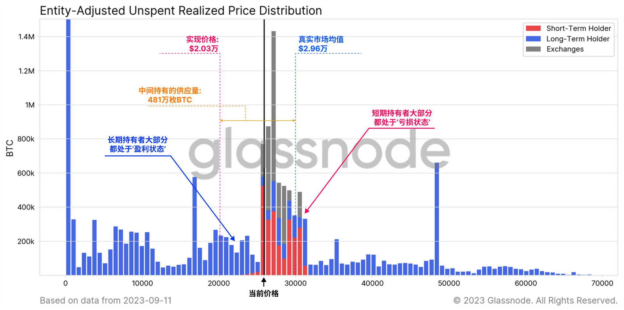 - 另一方面,短期持有者则在盈利边缘徘徊,他们的大部分供应都是在当前价格区间之上获得的。