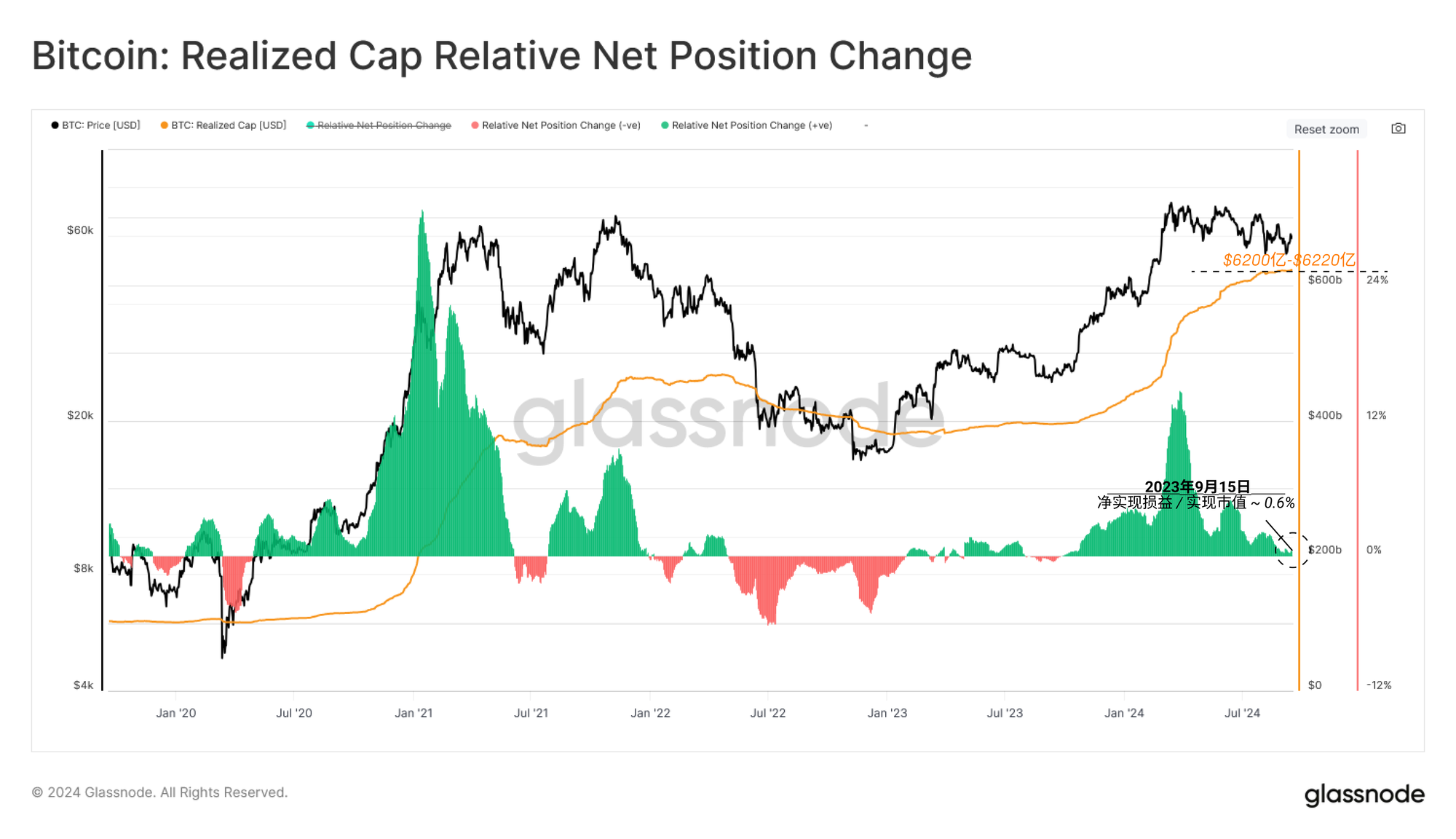 已实现市值是一个基础指标,提供了对比特币网络中累计资本净流入和流出的评估。