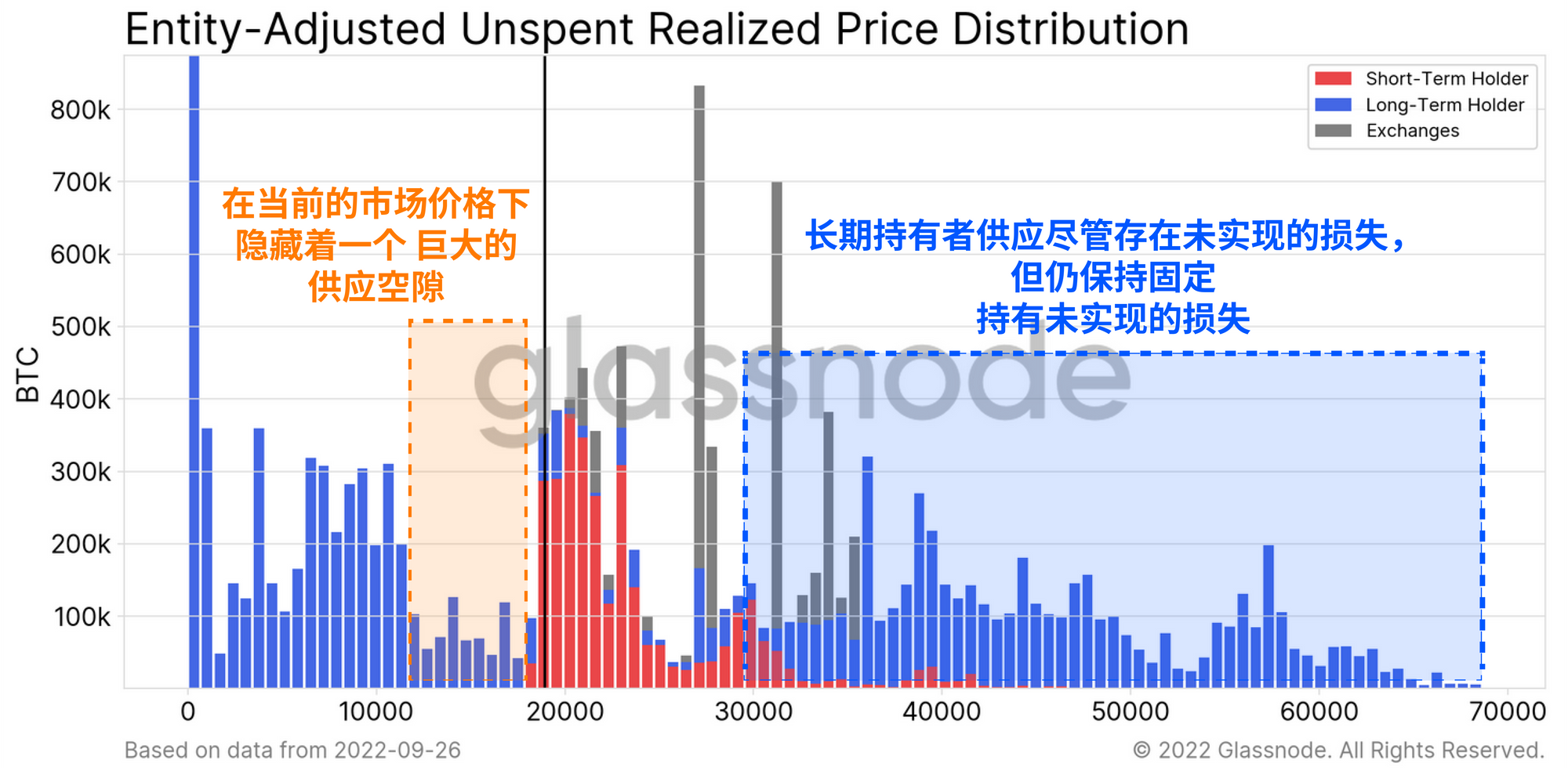 - 在18000美元以下,直到1.1万-1.2万美元的范围内,有一个巨大的供应空隙。低于当前周期低点的交易,将会促使大量短期持有者的比特币陷入严重的未实现损失,这可能会加剧下行的反身性,并引发另一个大范围的投降事件。