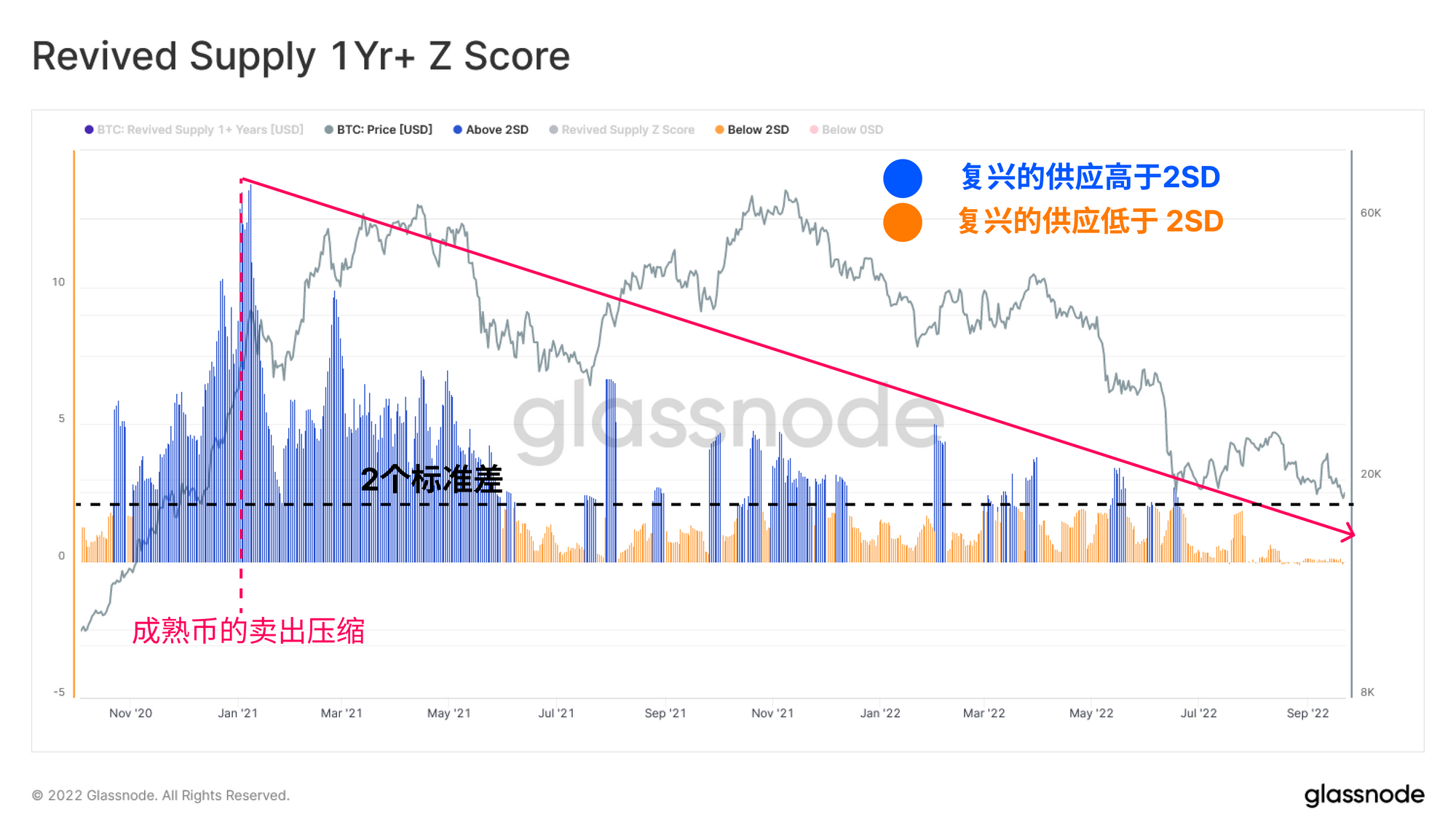 - 偏差超过2个标准方差🔵,表明相对于历史价值,大量的供应已经恢复了。