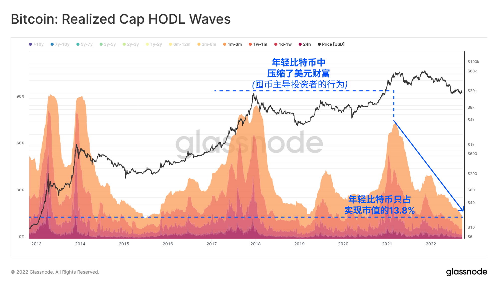 目前,由于投资者的主导行为是拒绝卖出,尽管全球市场极其不确定,但成熟币持有的财富处于历史最高状态。因此,几乎所有的市场活动都是同一批年轻币反复换手的结果。随着年轻的比特币的数量逐渐减少,如果市场潮水转向,它可能导致最终的供应挤压。