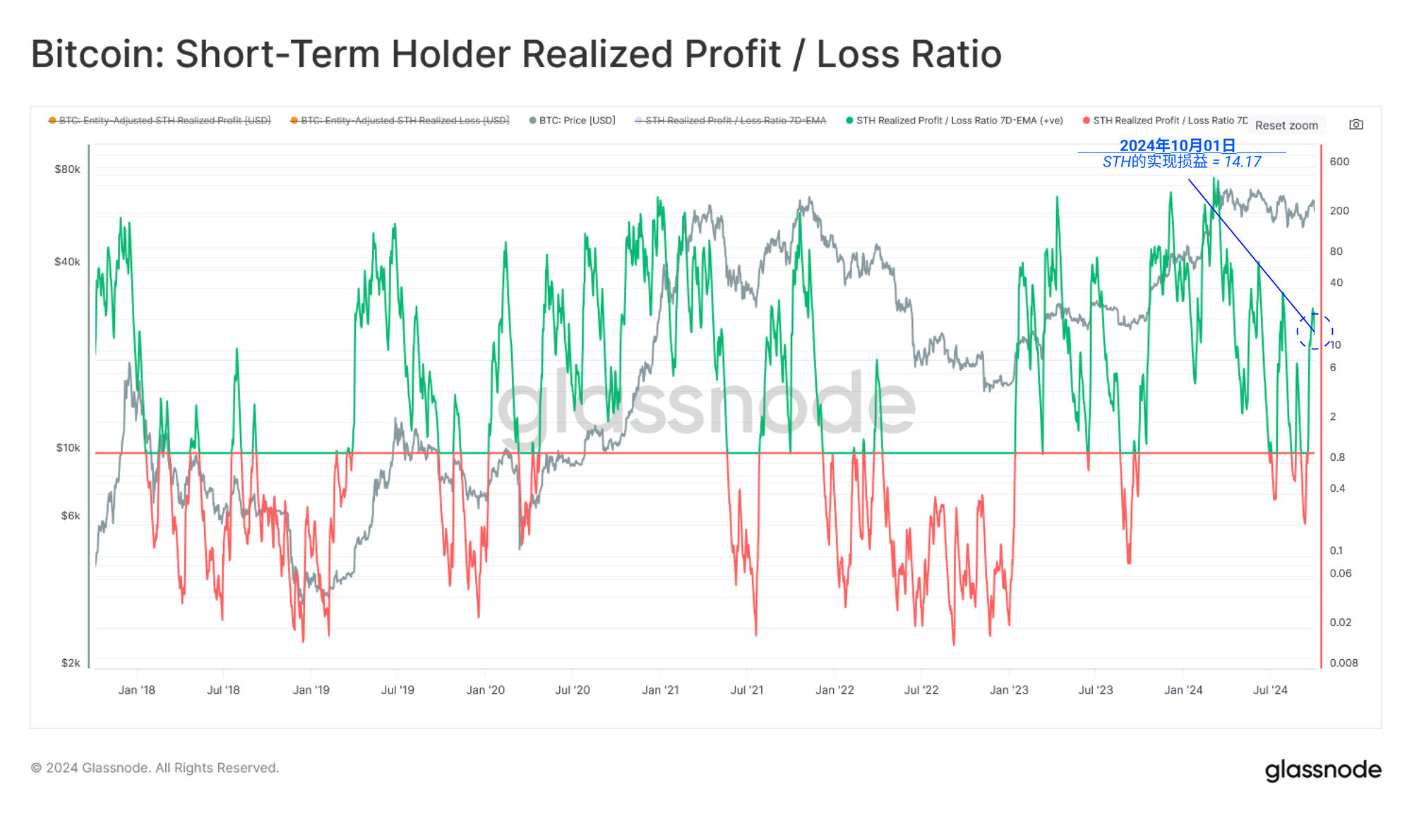 然而,与之前如2022年熊市结构中的深度和持续时间相比,这一次的表现明显不同。 同时,市场价格在过去一个月保持平稳,但短期持有者的MVRV却在上升,显示出积极的背离。