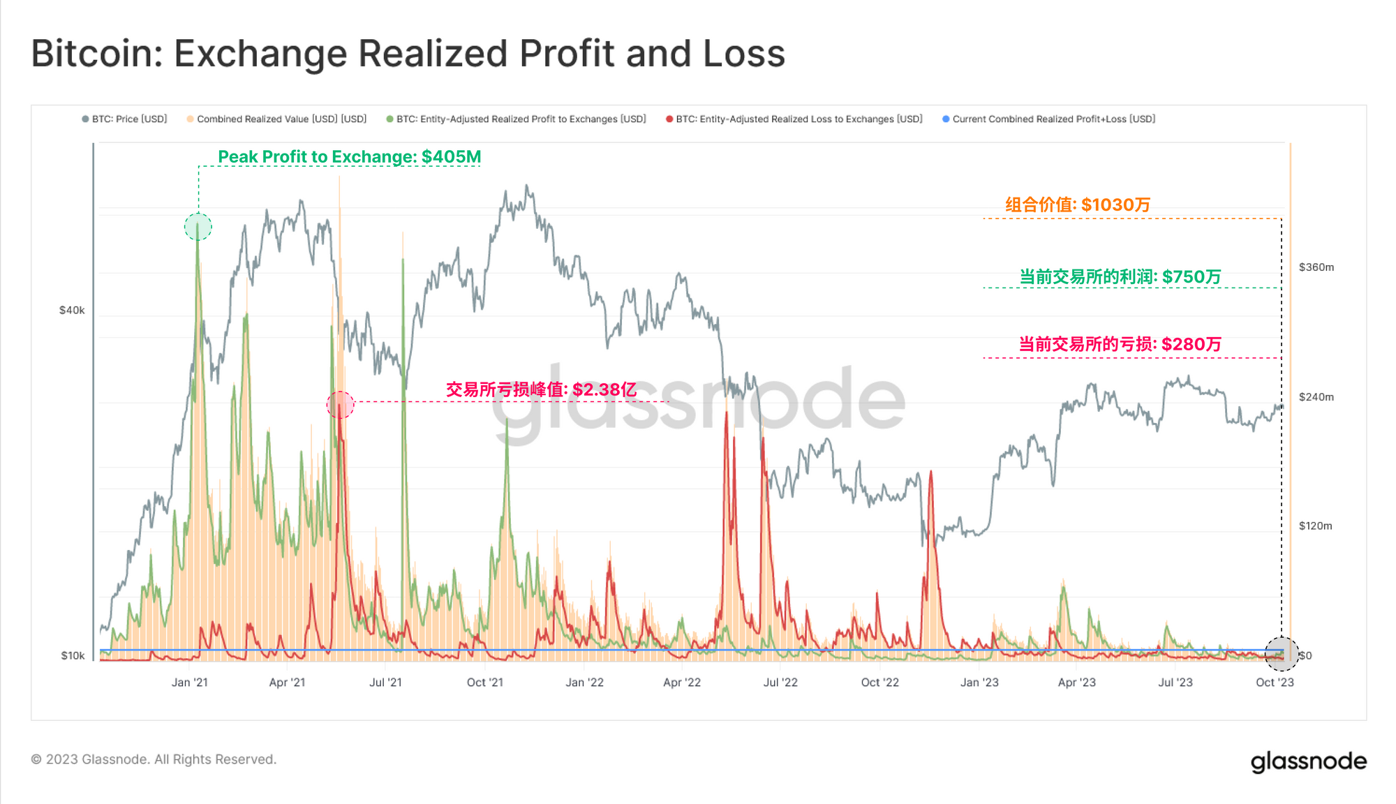 从2021-22年的数据来看,流向交易平台的货币的净盈亏额度也有大幅回落,这些数据都创下了2020年以来的新低。