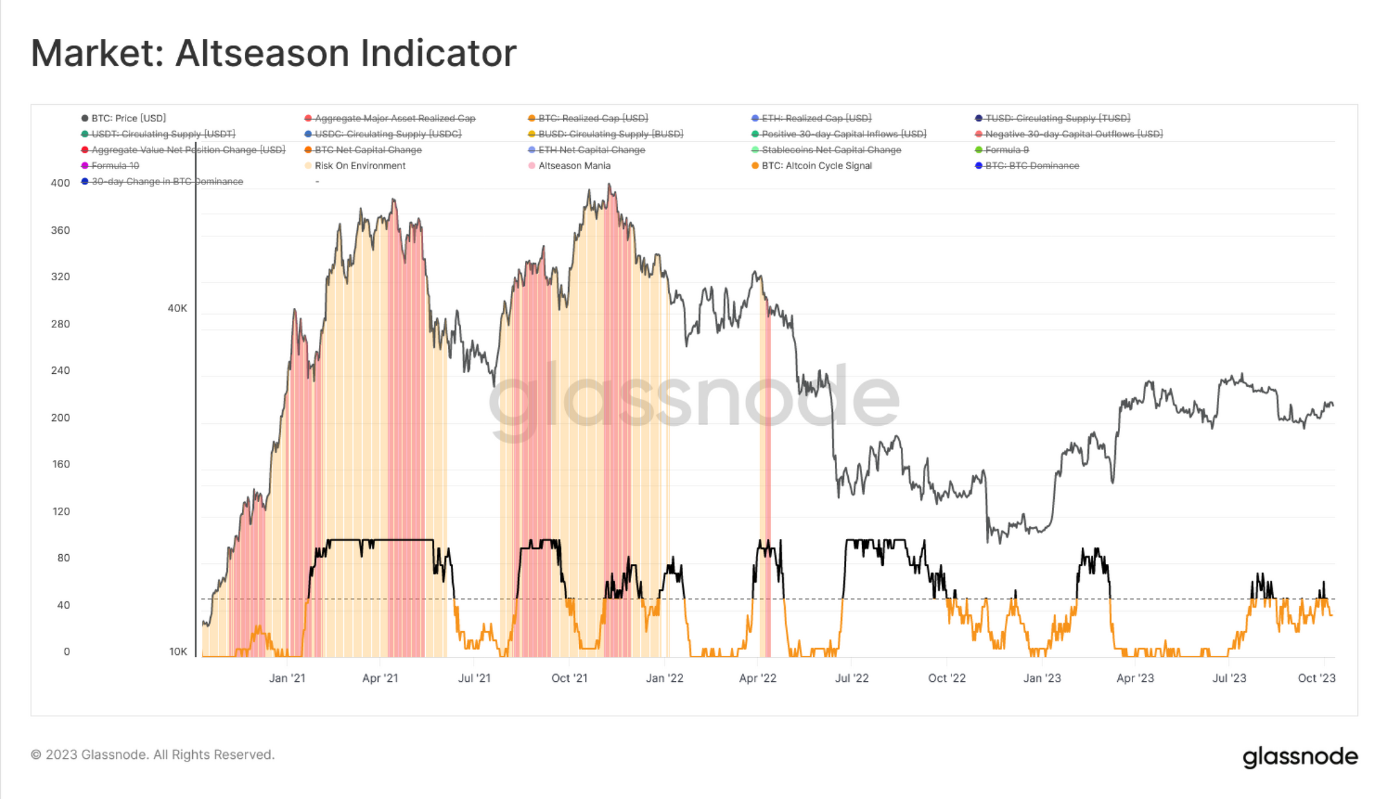 鉴于链上发生的情况很少,我们在下一部分将深入探讨一个被称为“山寨币季节”的资本轮动现象。基于此,我们研发了一个创新工具,旨在准确捕捉“山寨币季节”中资本轮动的关键时刻。