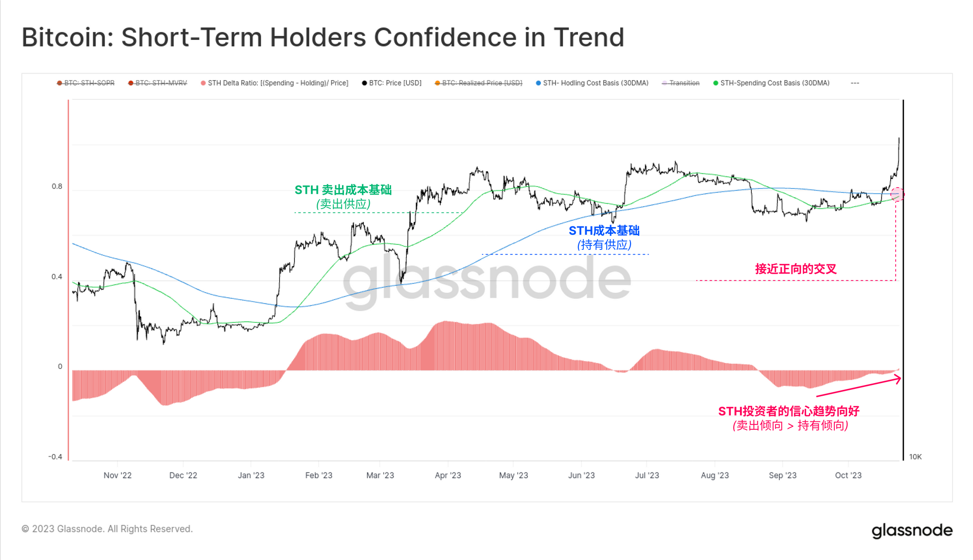 如果我们把这两个成本基准模型结合起来,我们可以建立一个跟踪短期持有者信心趋势的振荡器(在 第38周周报中作了进一步探讨)。