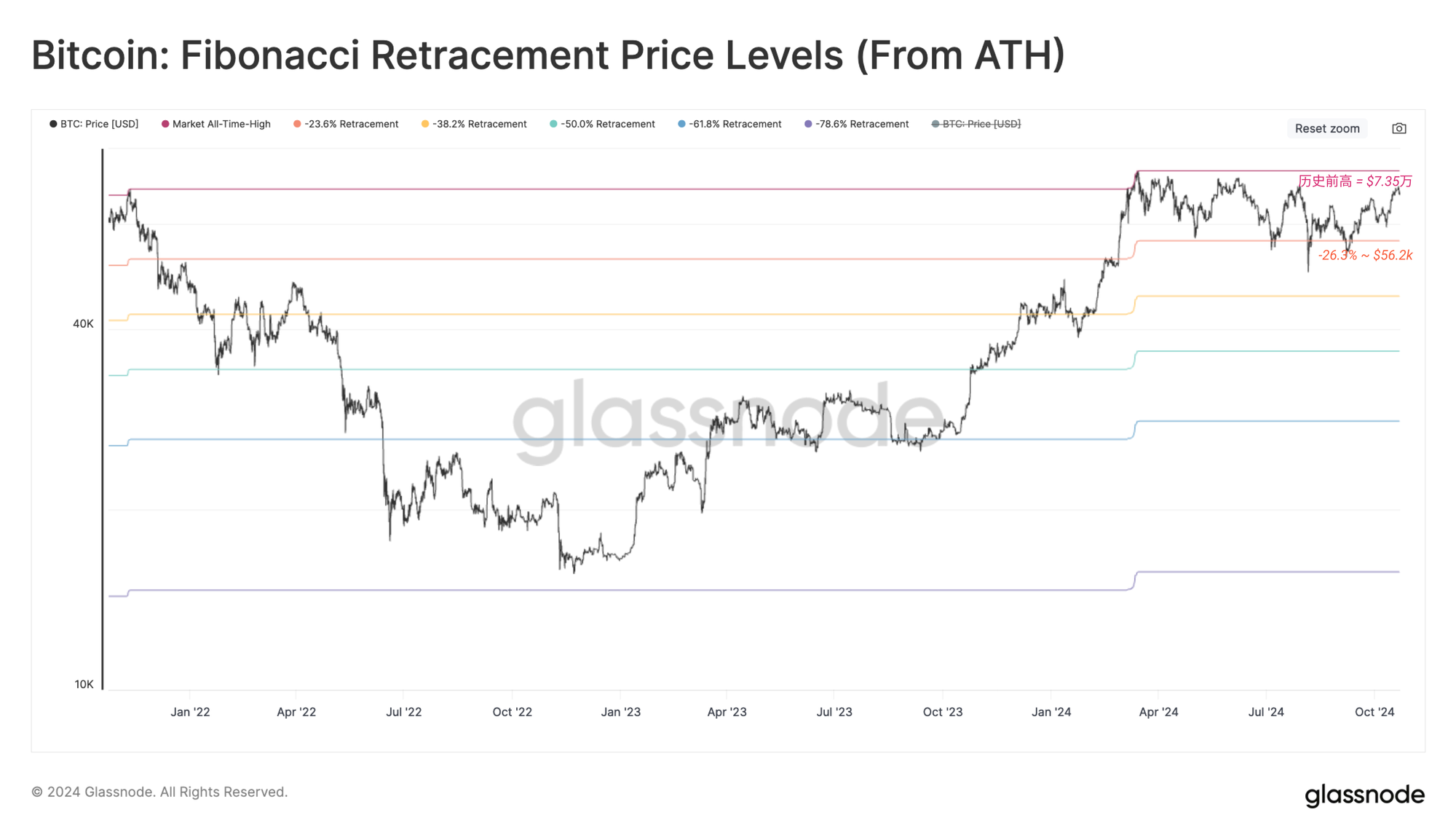 目前价格正在试图从热情牛市阶段过渡到狂热牛市阶段,标志着持续突破 2021 年 69,000 美元的历史高点。这一水平在 2024 年 3 月短暂突破,但当时的获利了结过重,迫使市场经历了一段冷却投资者热情的时期。