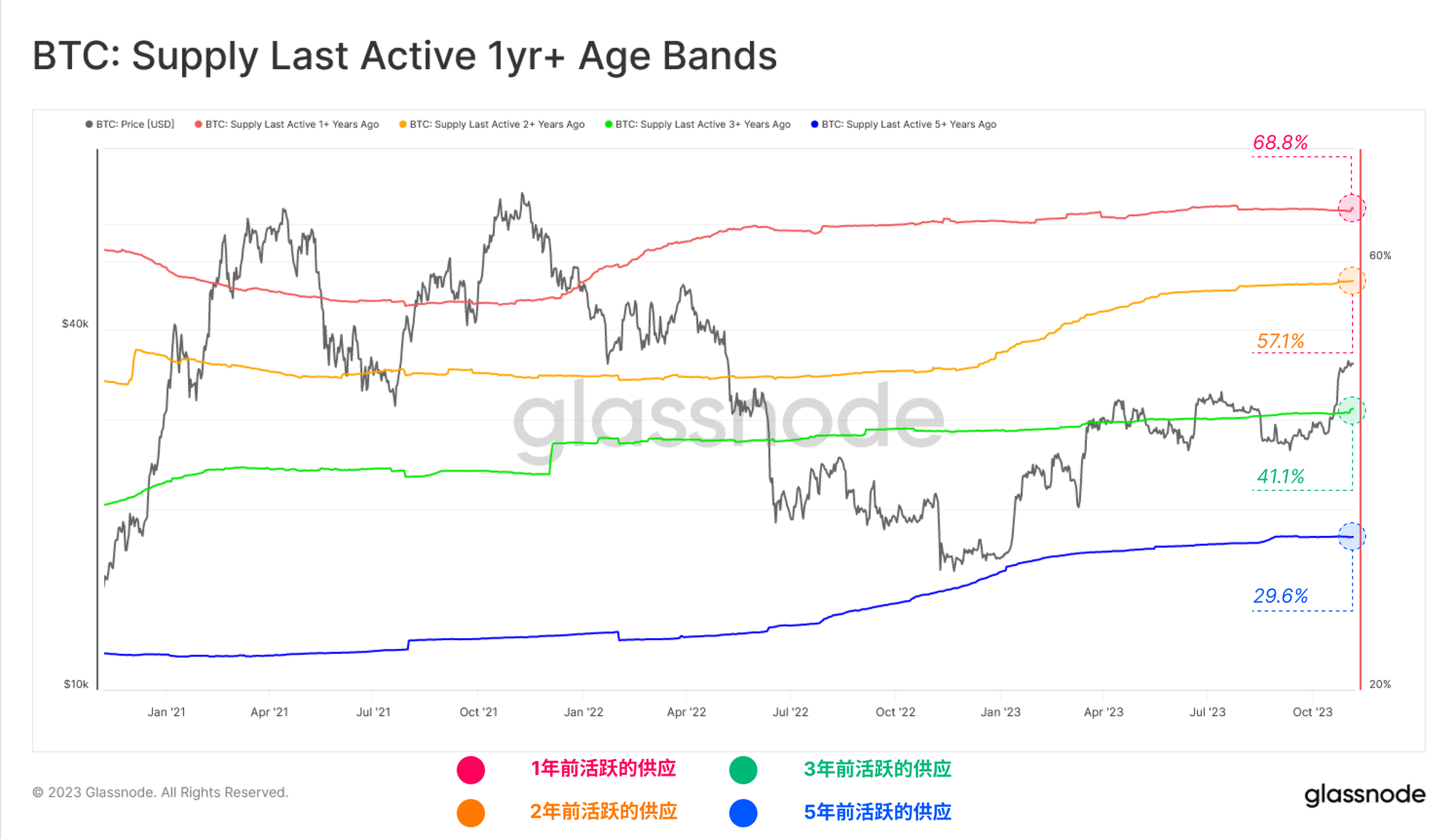比特币供应历来紧张,许多供应指标描述“比特币不活跃”达到了多年,甚至是历史新高。这表明比特币的供应非常紧张,考虑到去年强劲的价格表现,这一点令人印象深刻。随着4月份预期的减半,以及围绕美国现货ETF的积极势头,未来几个月对比特币投资者来说将是激动人心的。