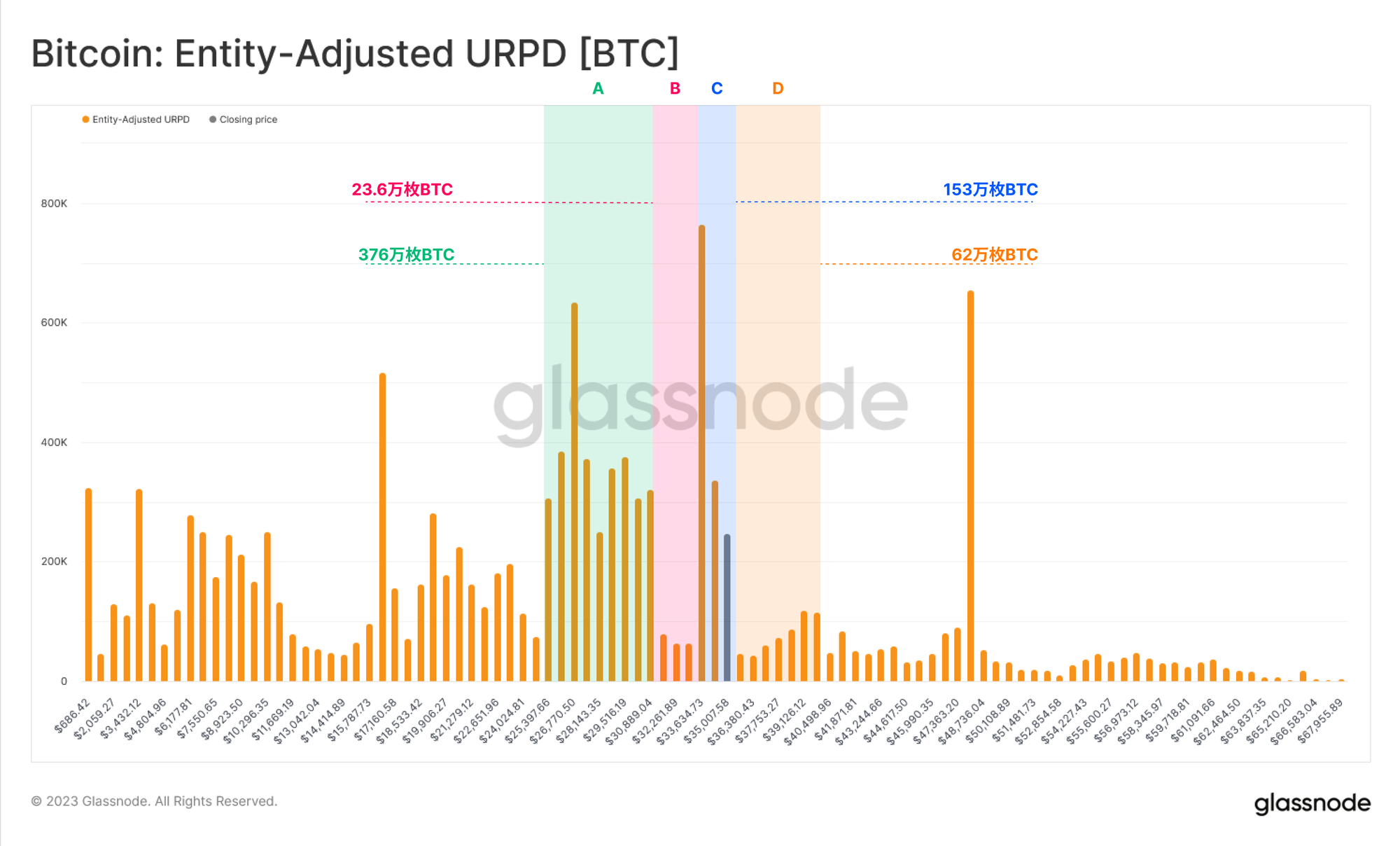 - 区域C:在目前的价格范围内,33,000美元至35,000美元之间最近有大量供应成交。