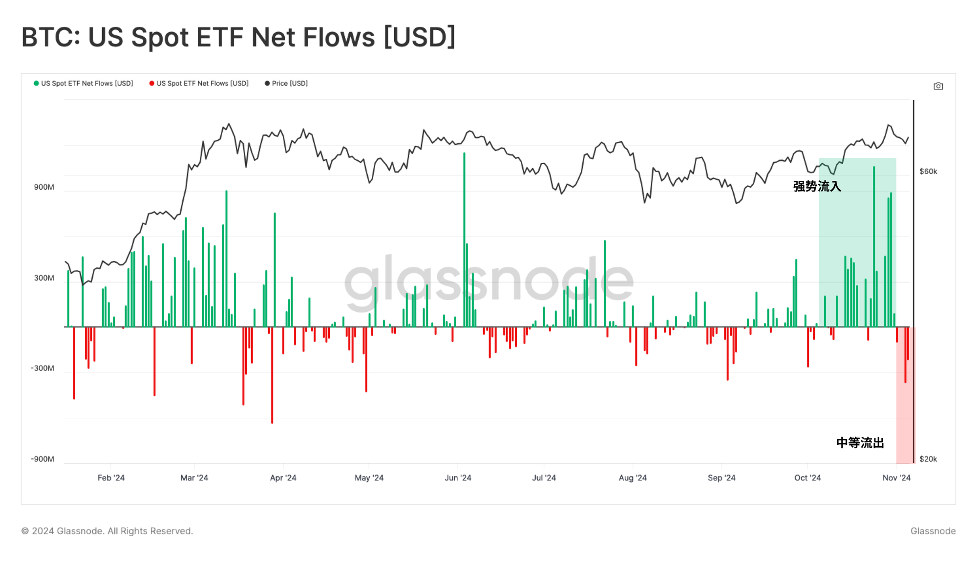 - 比特币资产的资本流入量持续增长,表明新需求的不断涌入。