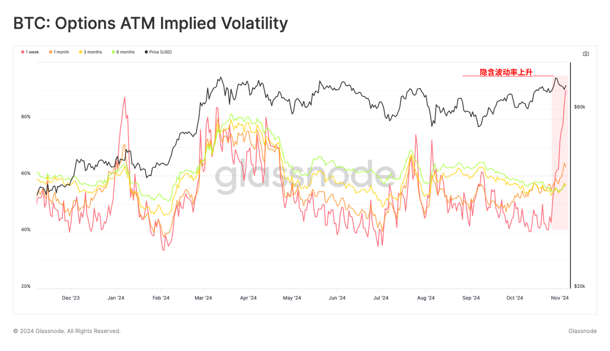 这一预期波动性增加的想法也反映在期权隐含波动率(IV)中,