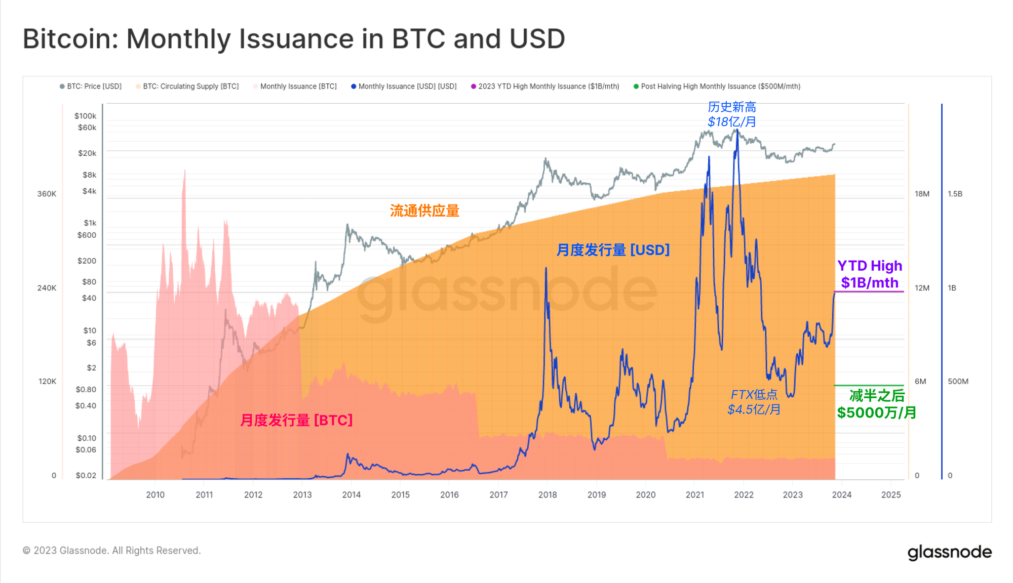 在2024年减半之后的世界中,这将被削减到每月5亿美元,这与一年前设置的FTX低点附近的每月4.5亿美元分配压力相当。