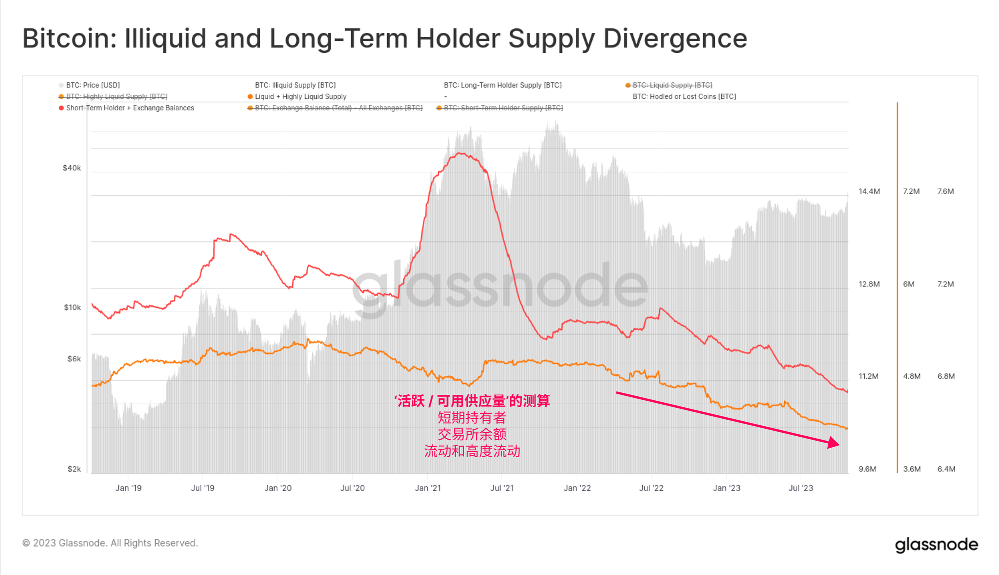 我们已经确定,"可用供应 "的各种衡量标准的普遍趋势是下降。这一趋势已经持续了数年之久,但自2022年6月全市场大规模抛售(LUNA-UST和3AC事件)以来,这一趋势明显加速。