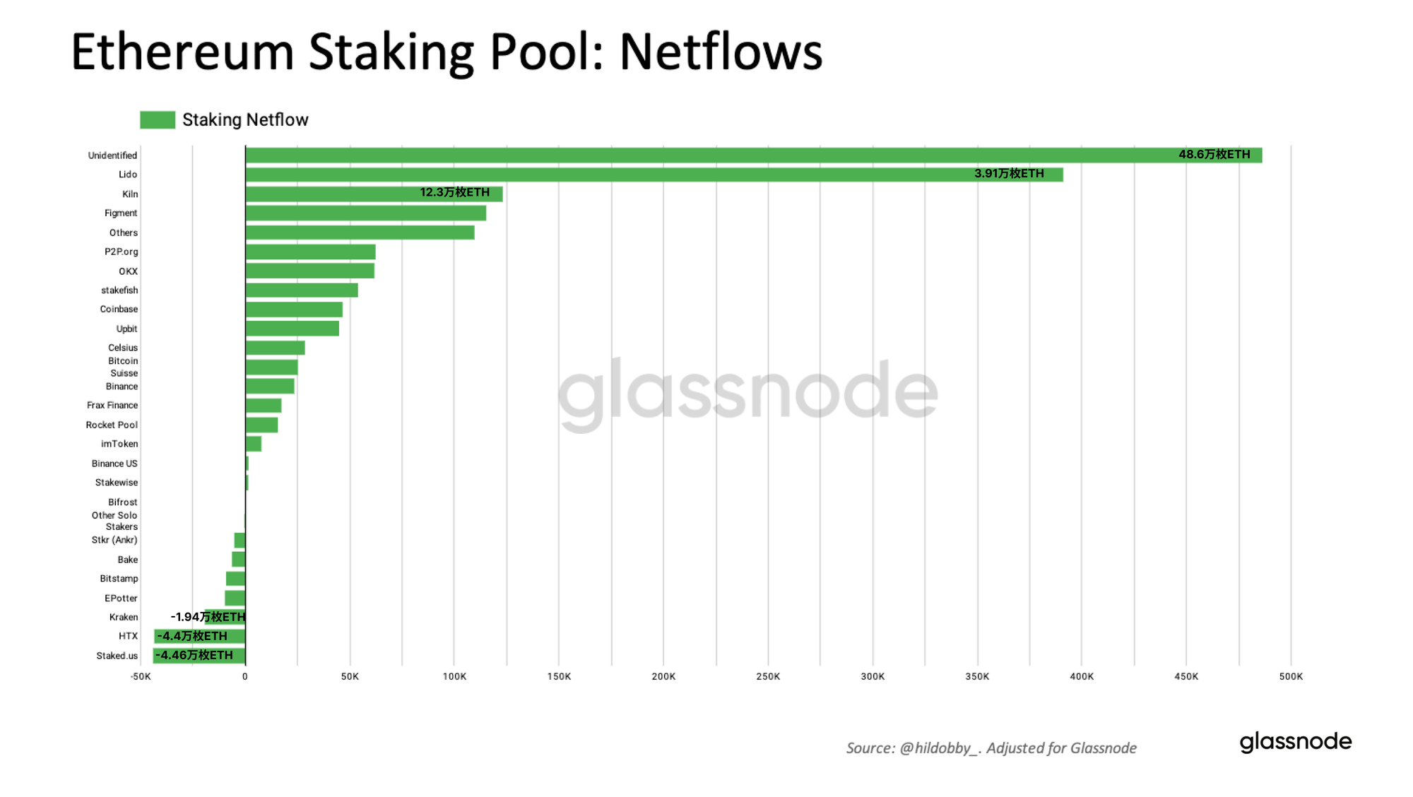 - 自10月份以来,中心化交易所(CEX)一直主导着质押撤出事件,其中 Kraken 和 Coinbase 的质押流出量最大。