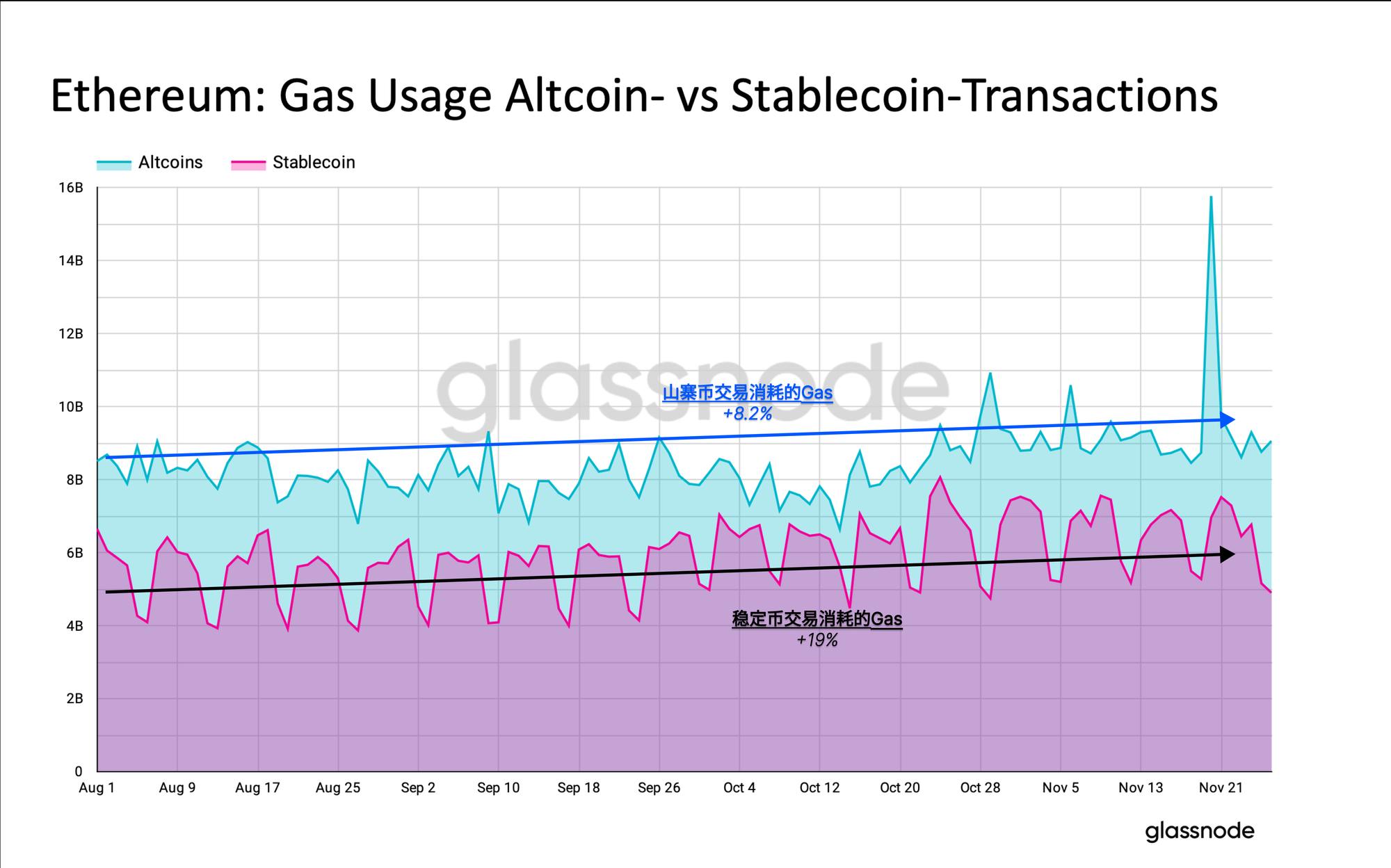 我们还可以评估各种交易类型中gas使用的详细分类。通过这些指标,我们可以确定主要造成供应燃烧的活动。
