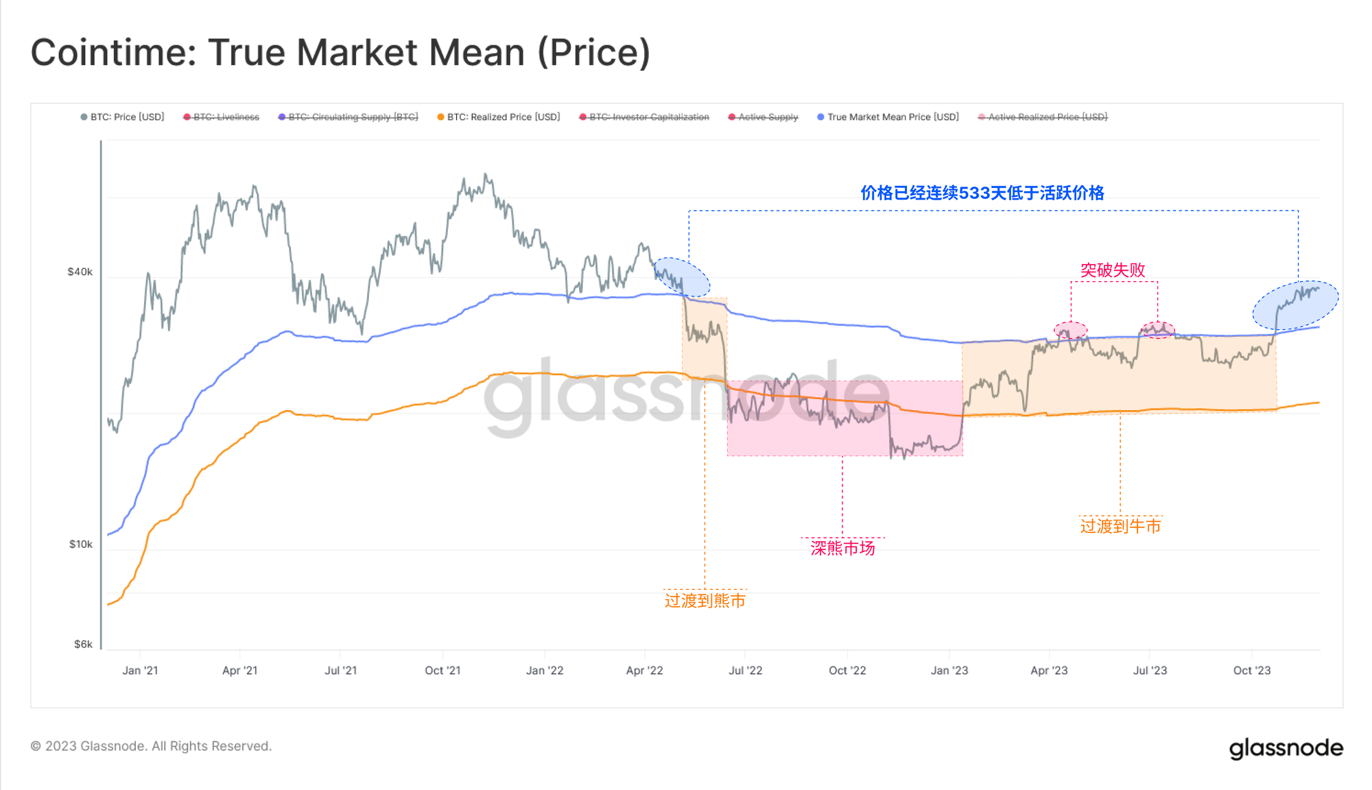 2023年的上涨使比特币价格明显高于两个关键的链上定价水平: