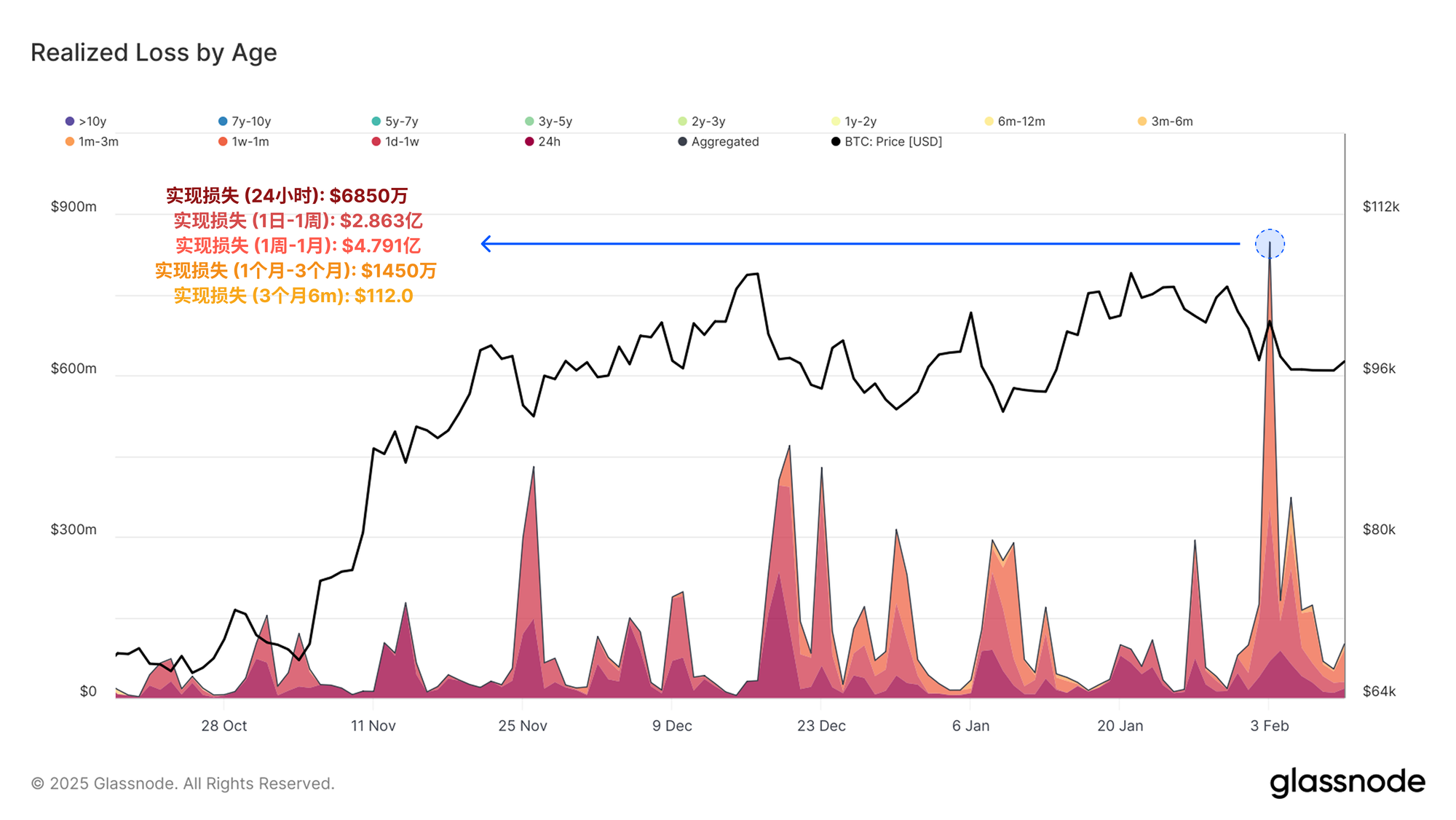 这进一步印证了链上交易量和已实现亏损主要与近期进入市场的投资者相关,这些投资者对市场波动和价格变动最为敏感。
