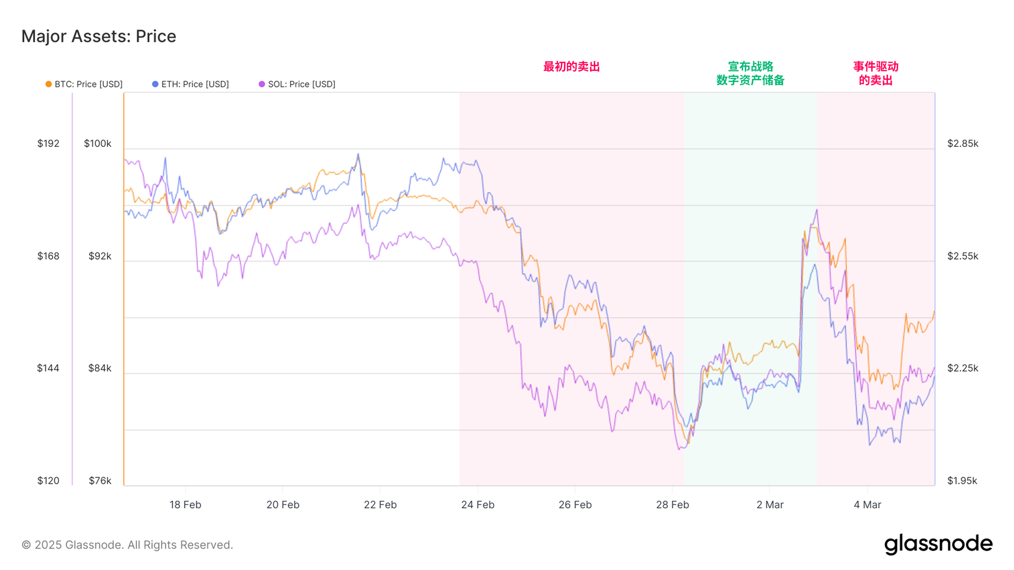 数字资产市场经历了剧烈的价格波动和强烈的局部波动,这主要受到沉重的卖方压力推动。价格下跌进一步受到日益不确定的经济环境以及与美国战略数字资产储备相关的投机行为的放大影响。