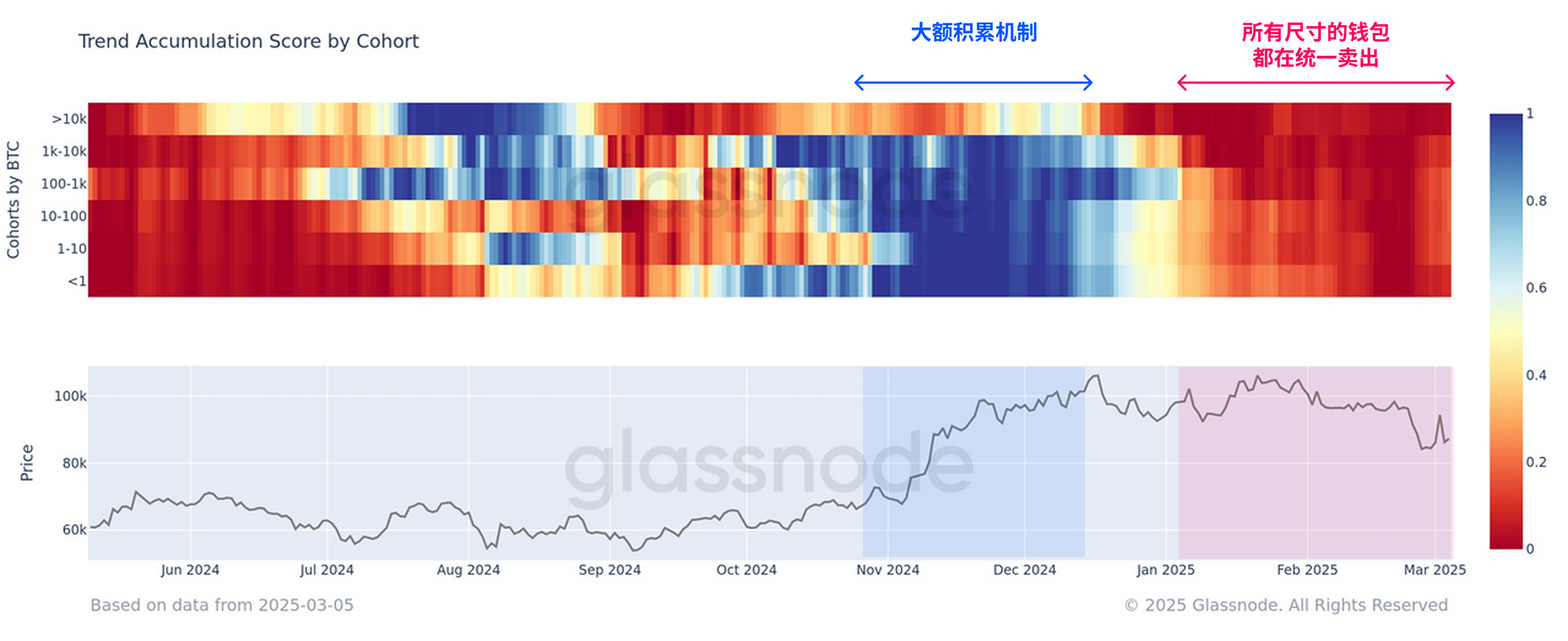 我们可以看到,不同钱包规模的持有者在积累和卖出行为上表现出显著的一致性。过去两个月,所有钱包规模群体都进行了大规模抛售,向市场施加了巨大的卖方压力。
