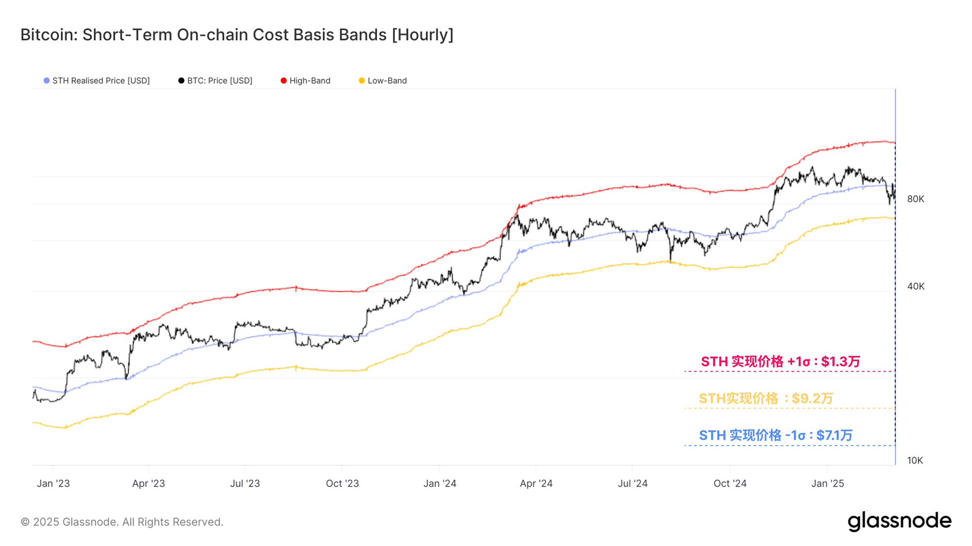 - 短期持有者成本基础 +1个标准差: $130,000