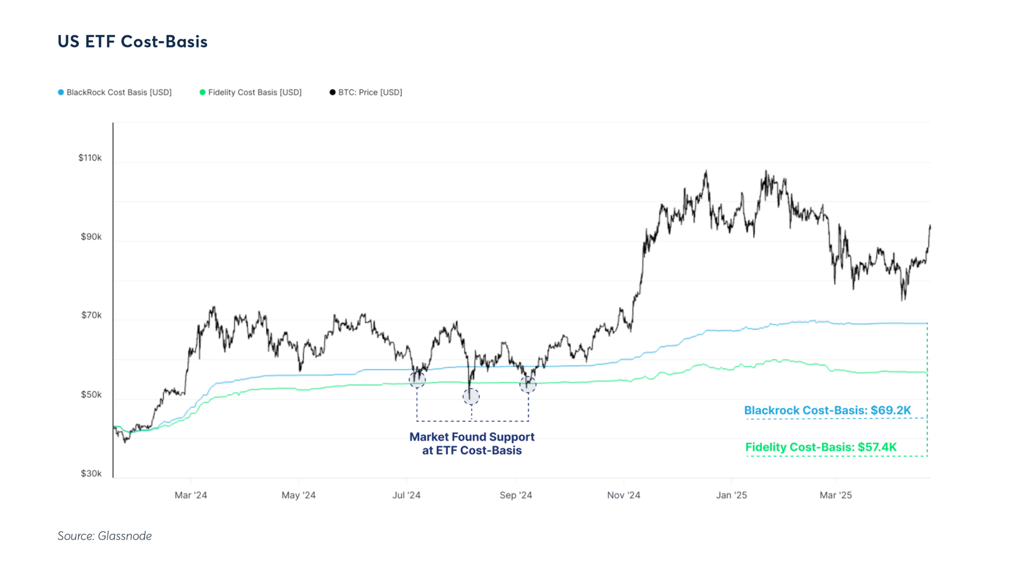 BlackRock and Fidelity ETF investors hold average cost bases of $69.2K and $57.4K respectively - levels that have helped establish a resilient price floor, underscoring the anchoring effect of institutional demand.