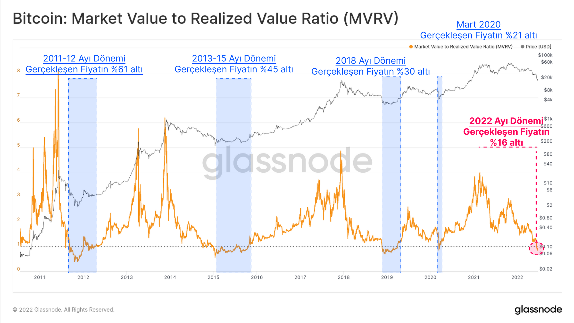 2022, dijital varlıklar için zor bir yıl oldu. Bu özel ayı piyasası hem Bitcoin'i hem de Ethereum'u çok sert vurdu. Birçok onchain ve pazar performansı metriği tarihsel ve istatistiksel olarak önemli düşüklere ulaştı.