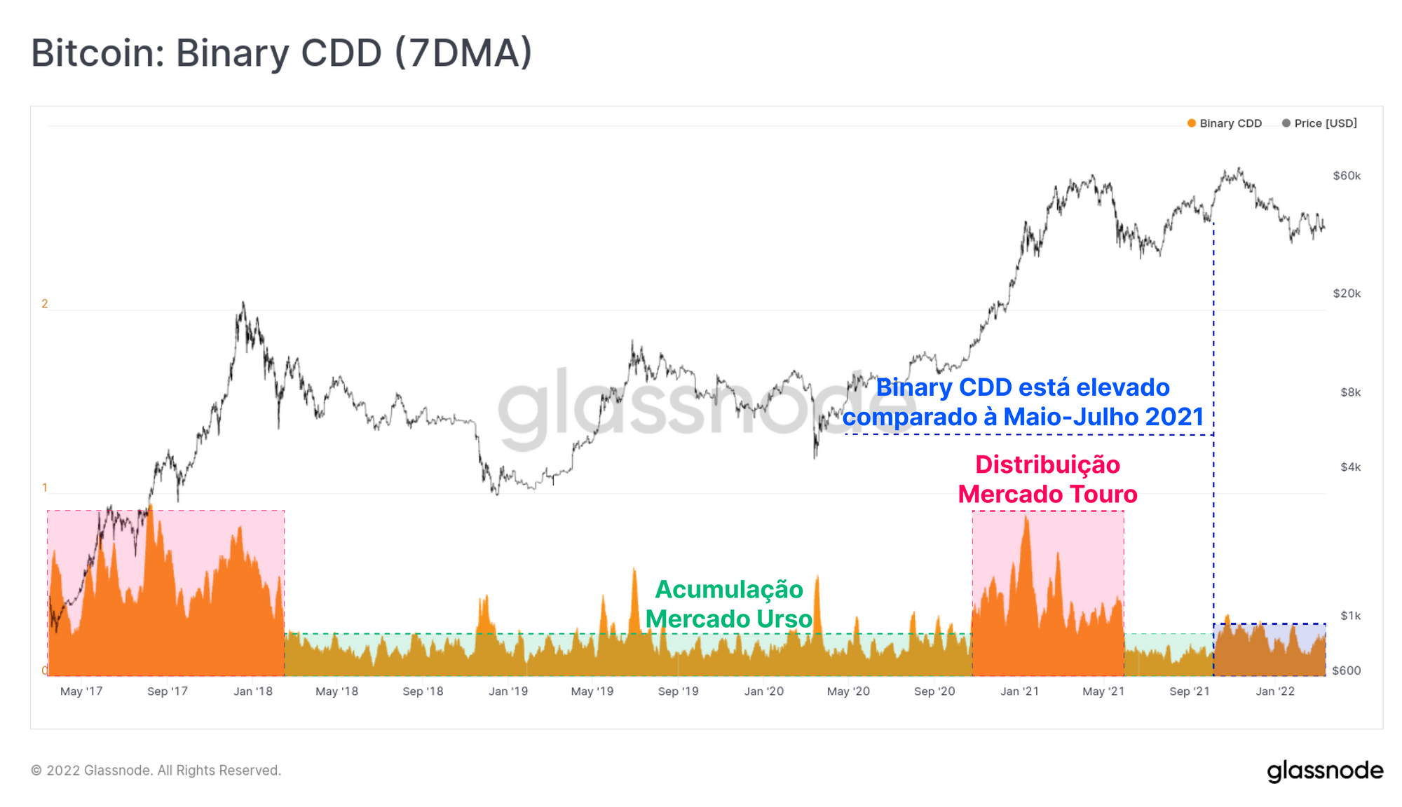 Desde setembro do ano passado, o Binary CDD tem negociado consistentemente mais alto do que uma fase de acumulação típica. Isso sugere ainda que ainda existe algum grau de redução do risco do investidor de longo prazo.