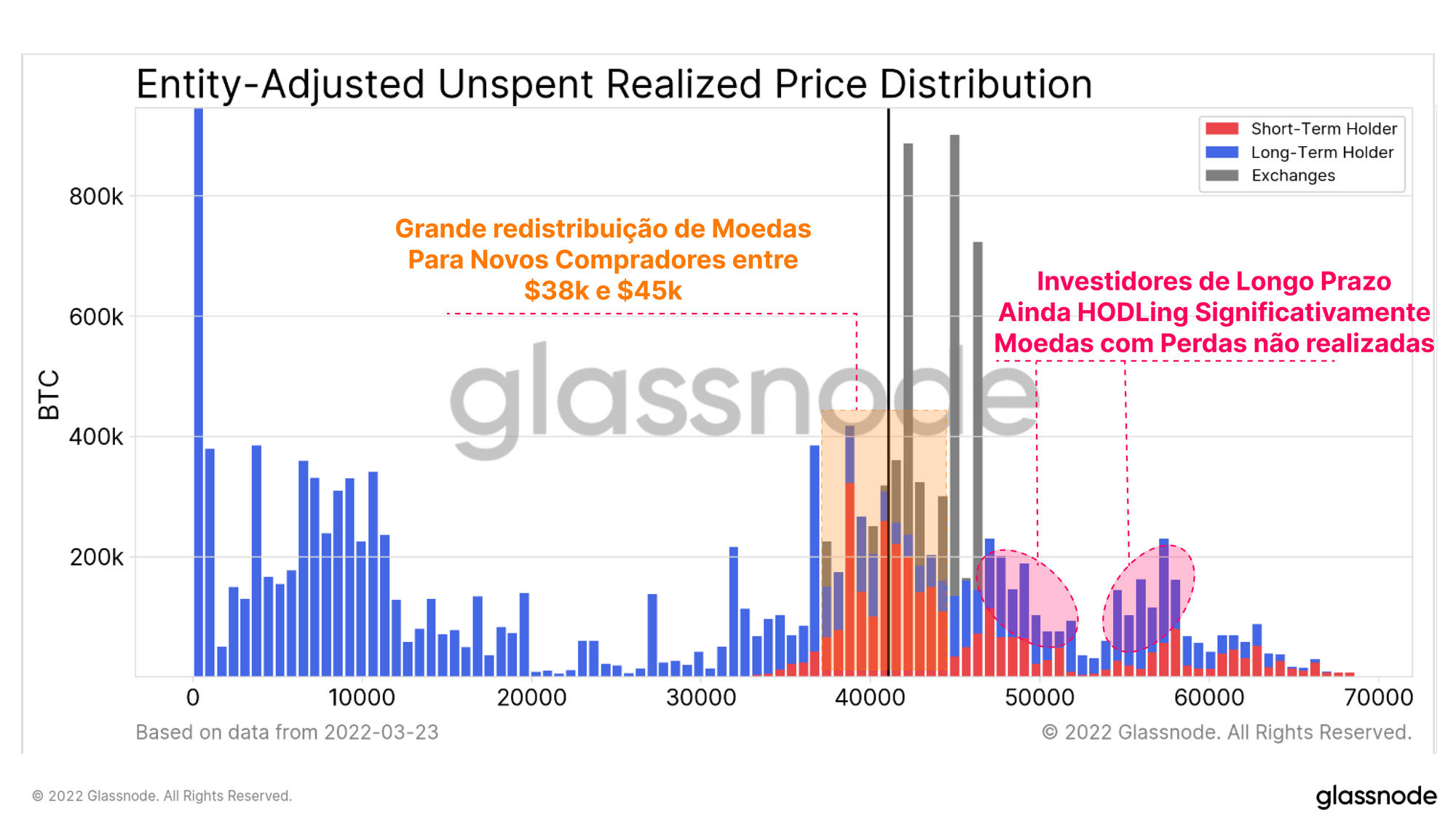 - Os Investidores de Curto Prazo acumularam uma grande proporção da oferta entre US$ 38 mil e US$ 45 mil. Isso indica que muitos investidores veem a faixa de consolidação atual como uma zona de valor, e isso tem características semelhantes à faixa de US$ 30 mil a US$ 40 mil de maio a julho de 2021 (explorada na semana 29 de 2021)