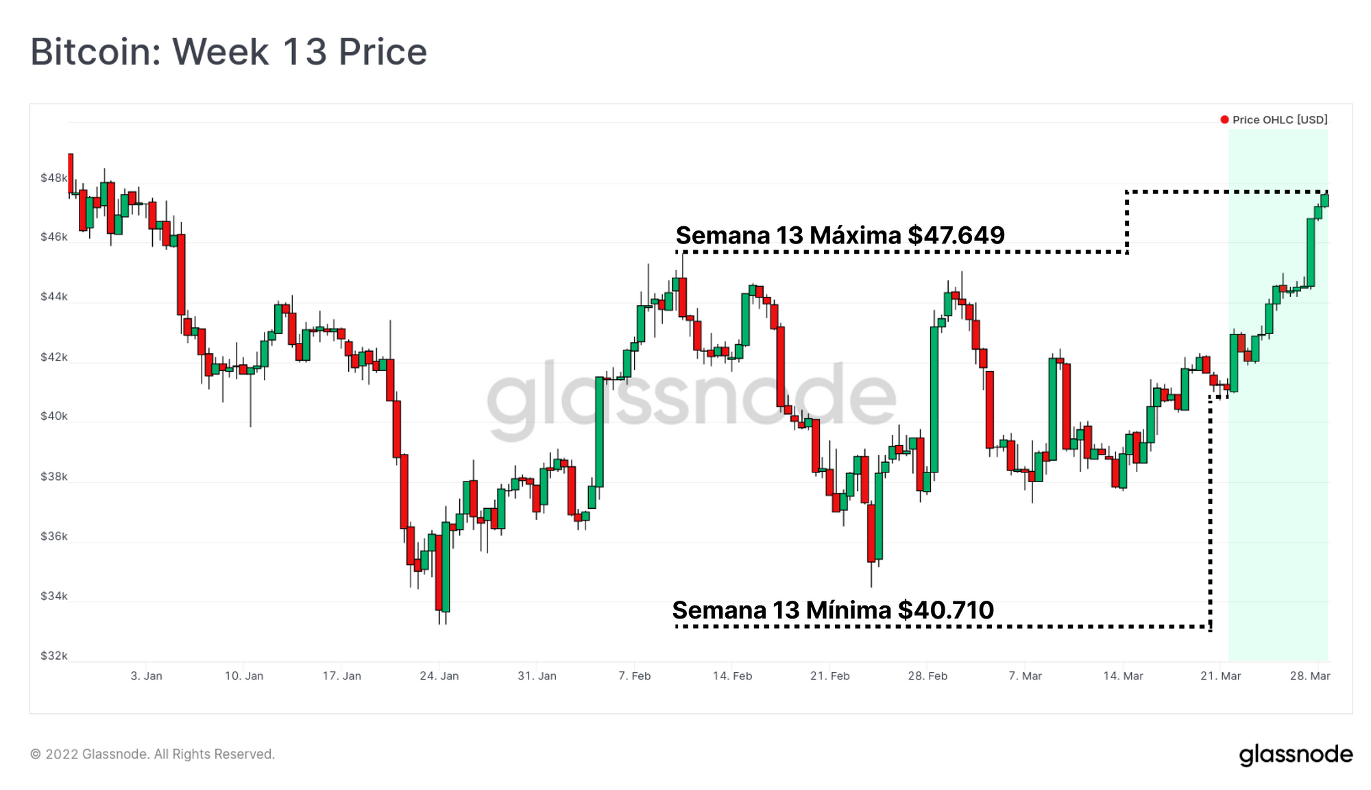 O mercado de Bitcoin teve uma semana forte, subindo da mínima de US$ 40.710 em direção à máxima da faixa de consolidação em US$ 47.649. Este é o primeiro rali sustentado após muitos meses de oscilação lateral dos preços.