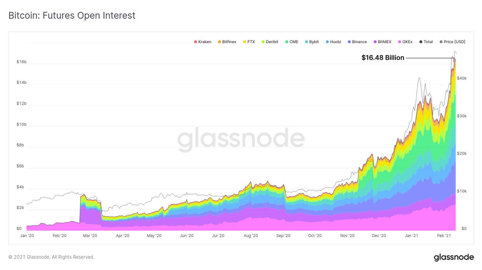 同时,衍生品市场动作频频,整个期货市场的未平仓合约呈现爆发式增长,达到164.8亿美元的历史新高,超出之前的峰值约34.8亿美元。