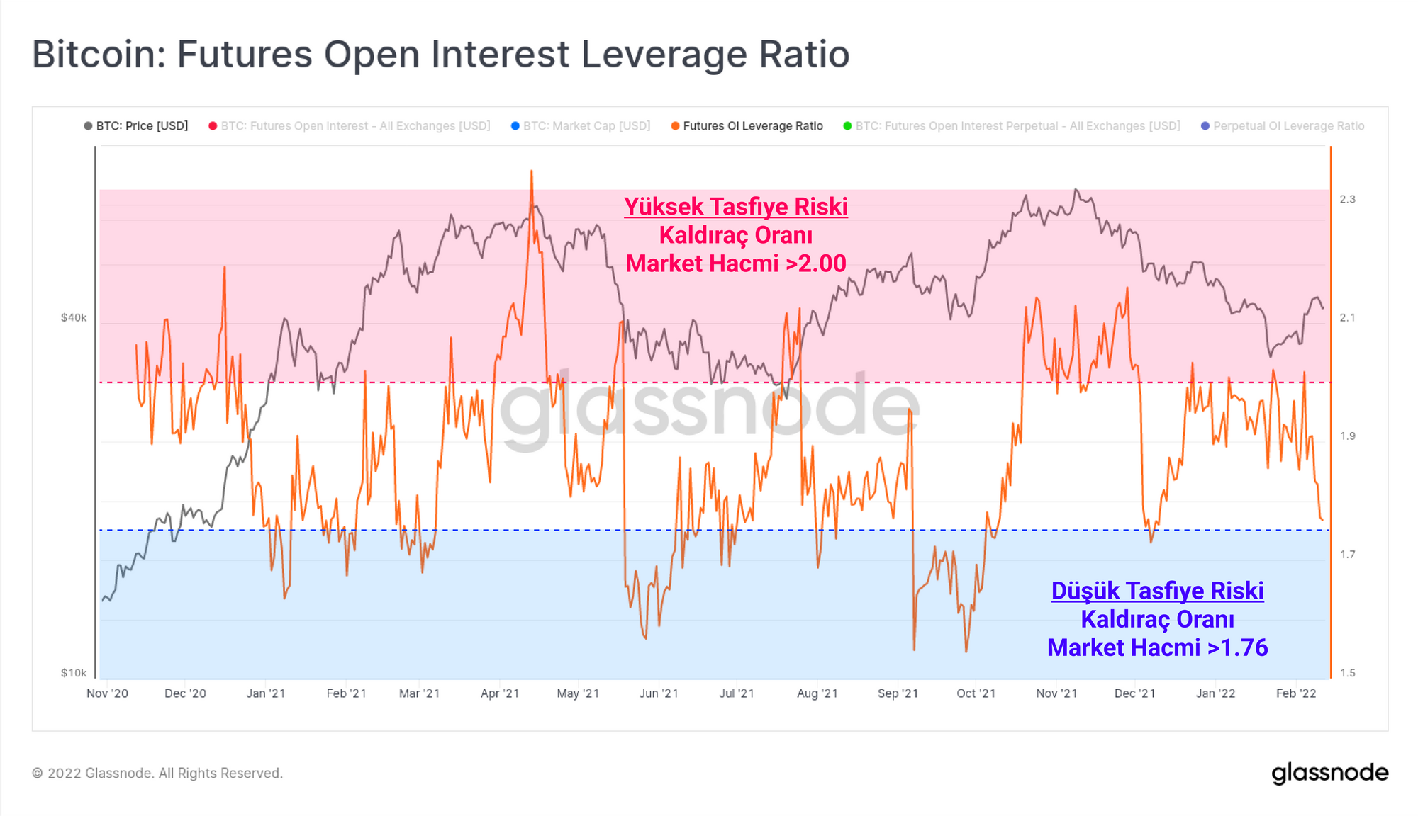 Toplam vadeli işlem açık faizi şimdi %2,0'dan piyasa değerinin %1,76'sına düştü. Bu büyüklükteki kaldıraç oranı, 2021 boyunca piyasa için önemli ölçüde daha istikrarlı bir aralık olduğunu gösterdi ve en son 4 Aralık’ta kaldıraç azaltma olayından sonra ulaşıldı.