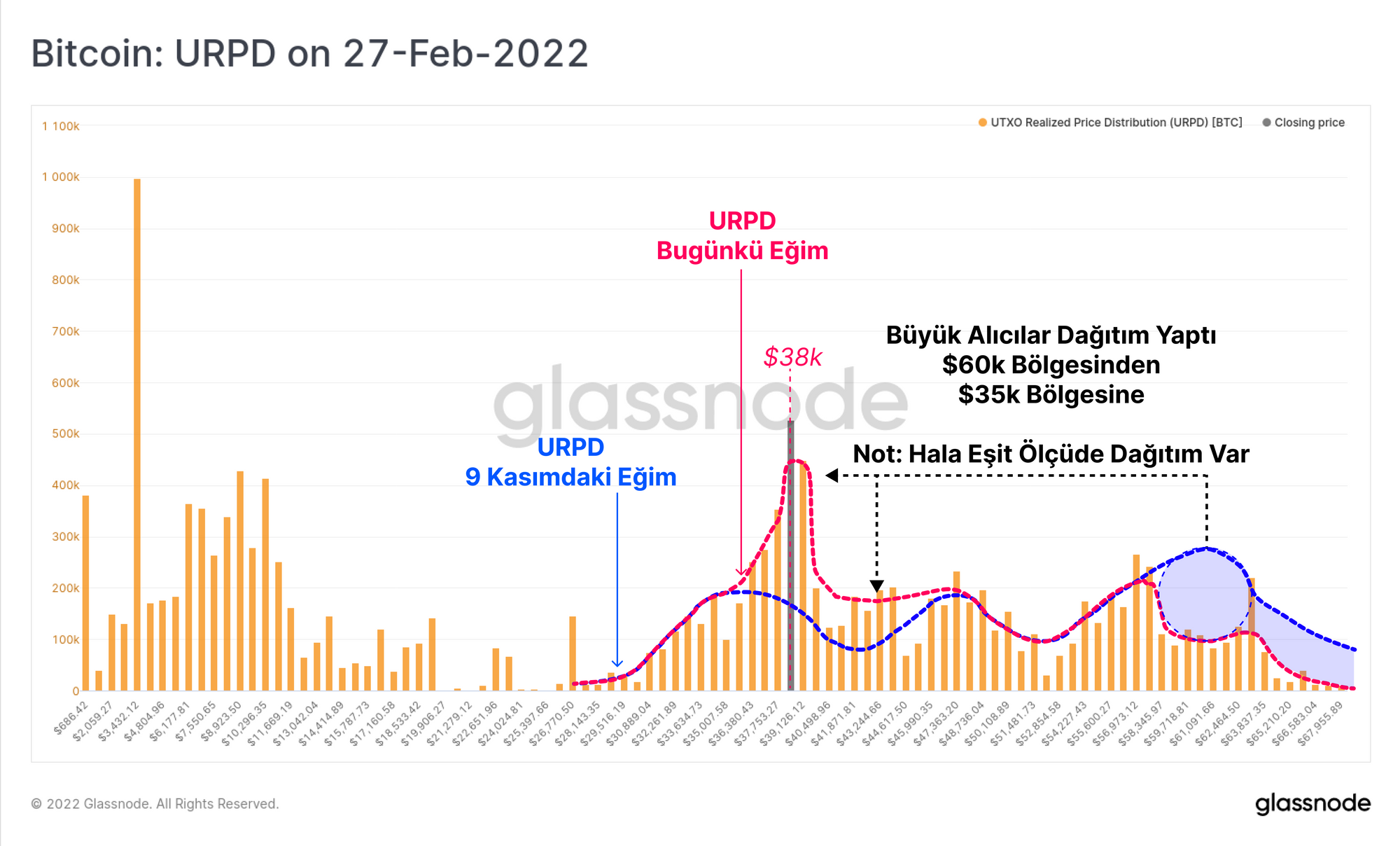 Ayrıca, ana yeniden dağıtım, tüm zamanların en yüksek seviyesinden 60 bin dolar + aralığı satın alan ve mevcut 35 bin ila 38 bin dolar arasında yeni alım yapmış olan yatırımcılardan geliyor gibi görünüyor.