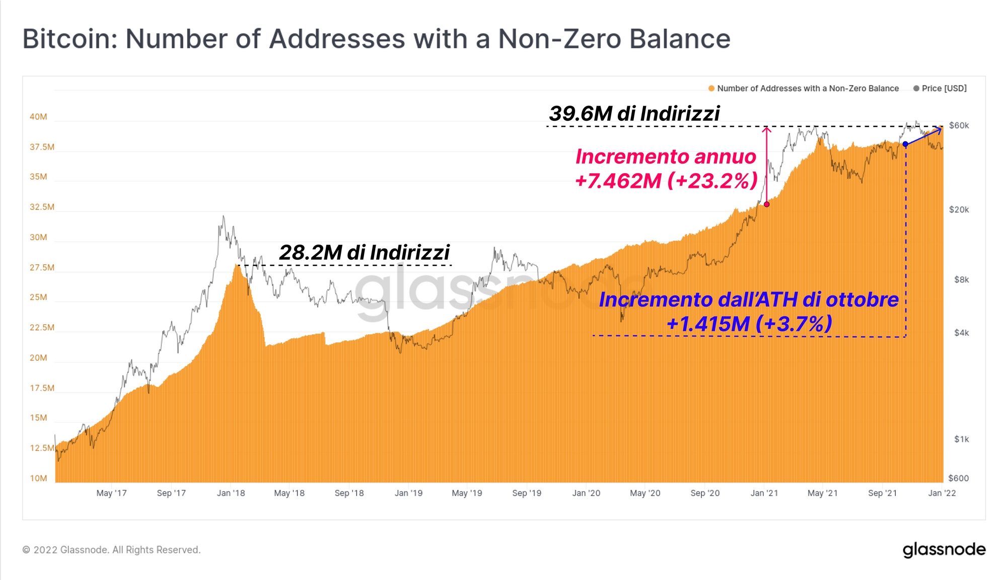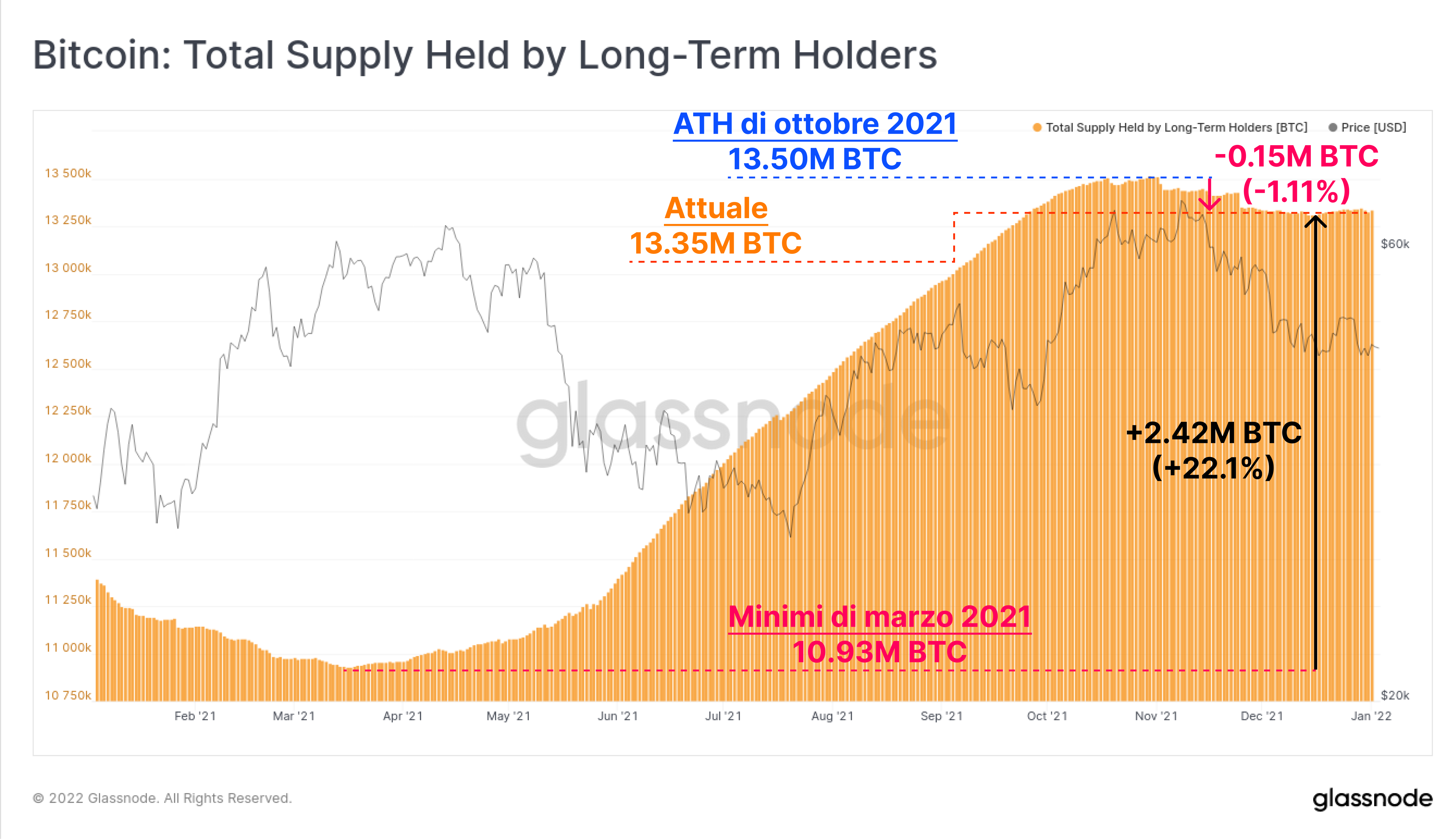 Vista l’elevata volatilità del 2021, assistere ad una simile accelerazione e mole di monete detenute durante tutto l’anno è decisamente notevole.