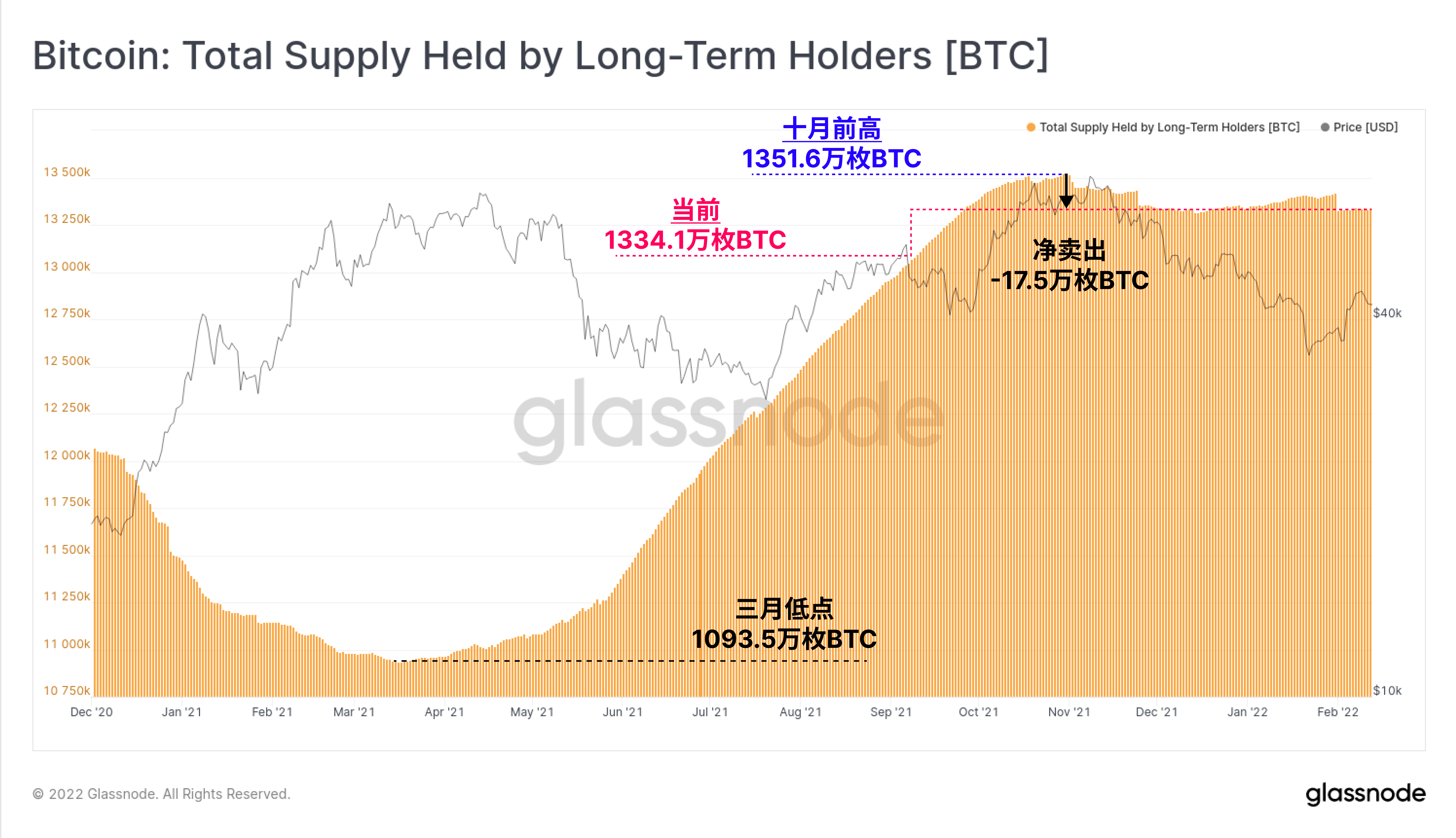 自10月的前高以来,长期持有者只卖出了17.5万枚比特币,这表明尽管有普遍的宏观阻力,但还是有一批非常有弹性的持有者。