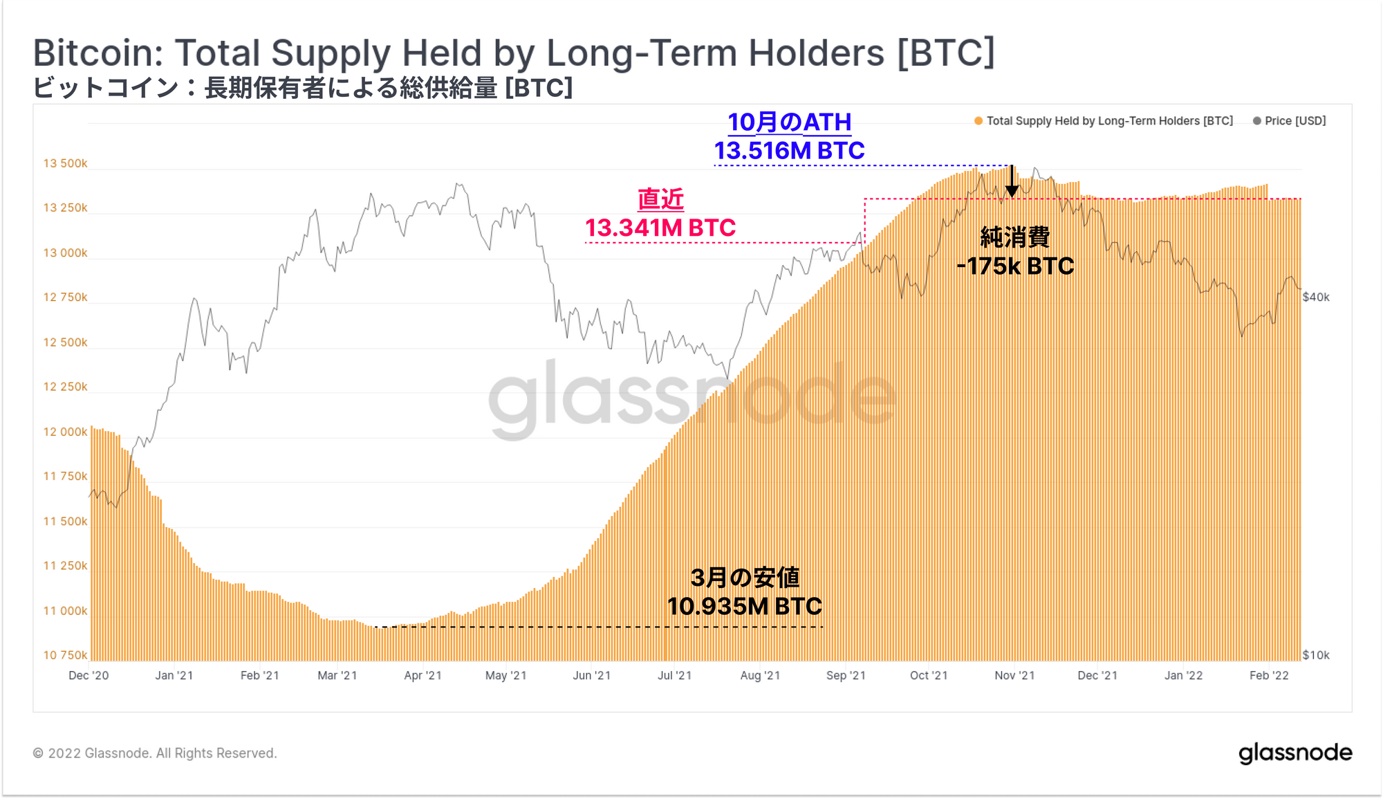 10月のATH以来、長期保有者は正味175k BTCしか使っておらず、マクロ的な逆風にもかかわらず、 驚くほど耐久性がある保有者コホートであることが分かる。