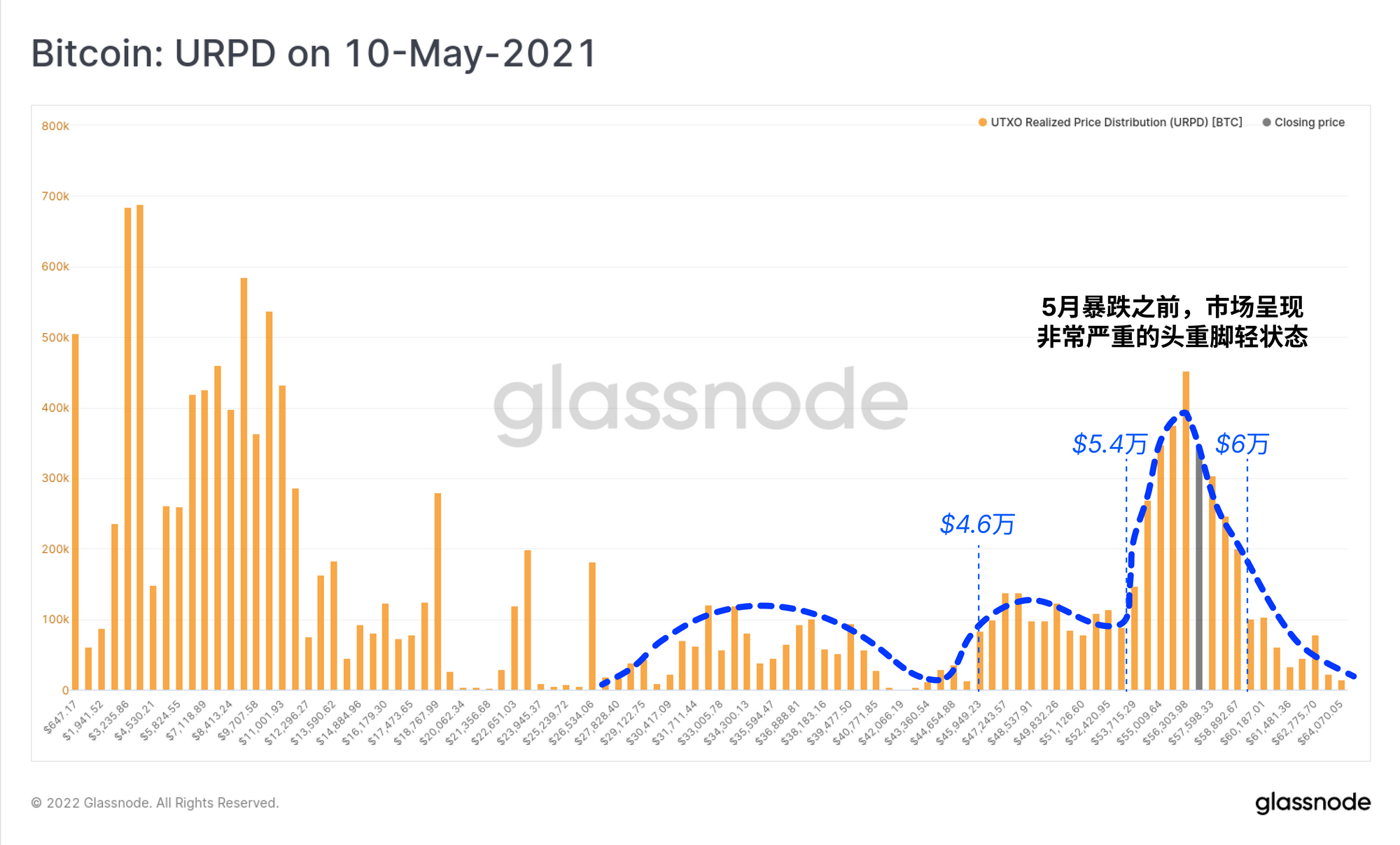 从5月至7月期间开始,比特币的分布偏向于头重脚轻,很大一部分比特币的供应量的价格在5.4万至6万美元之间。 尽管这表明在较高的价格上有一定程度的需求,但这也使市场变得脆弱,许多 “币价顶部买家 "对任何重大的价格调整都很敏感。