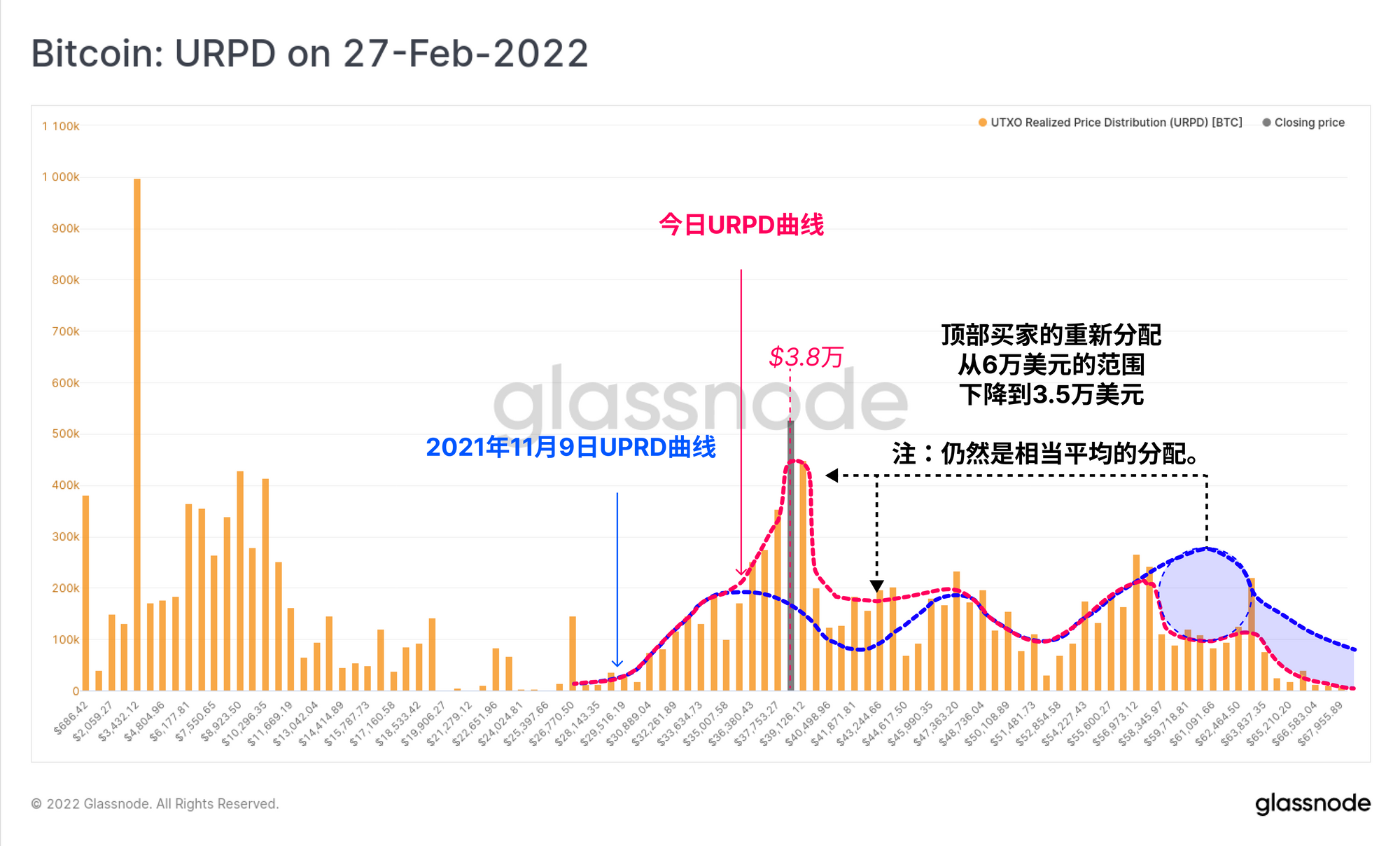 此外,主要的再分配似乎来自于那些在历史最高点附近买入,即6万美元以上的投资者,他们在目前3.5万至3.8万美元的价格范围内换手卖出。