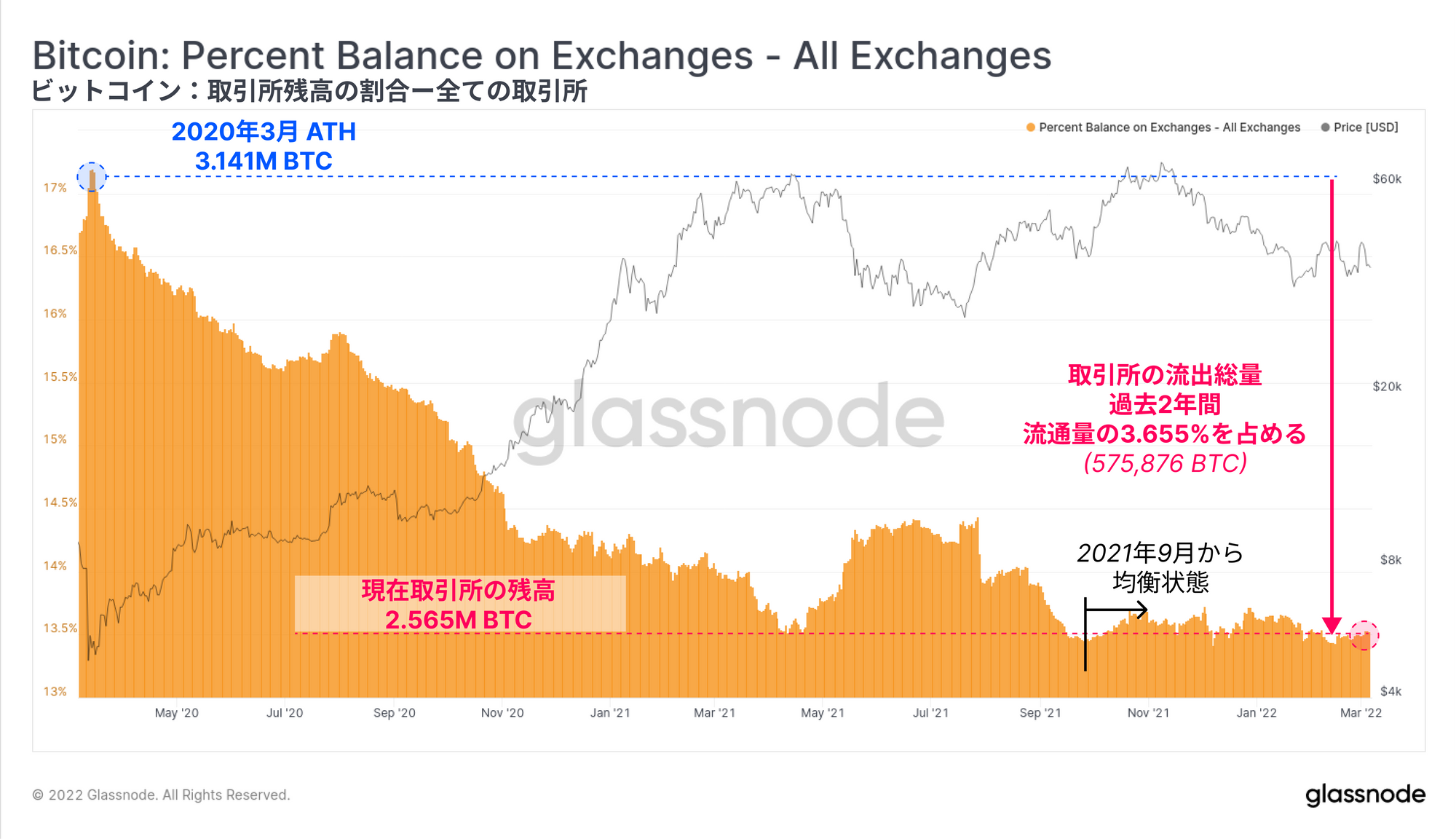 まず、取引所残高の指標における解釈について、以下のようなハイレベルなニュアンスがあることに留意してほしい: