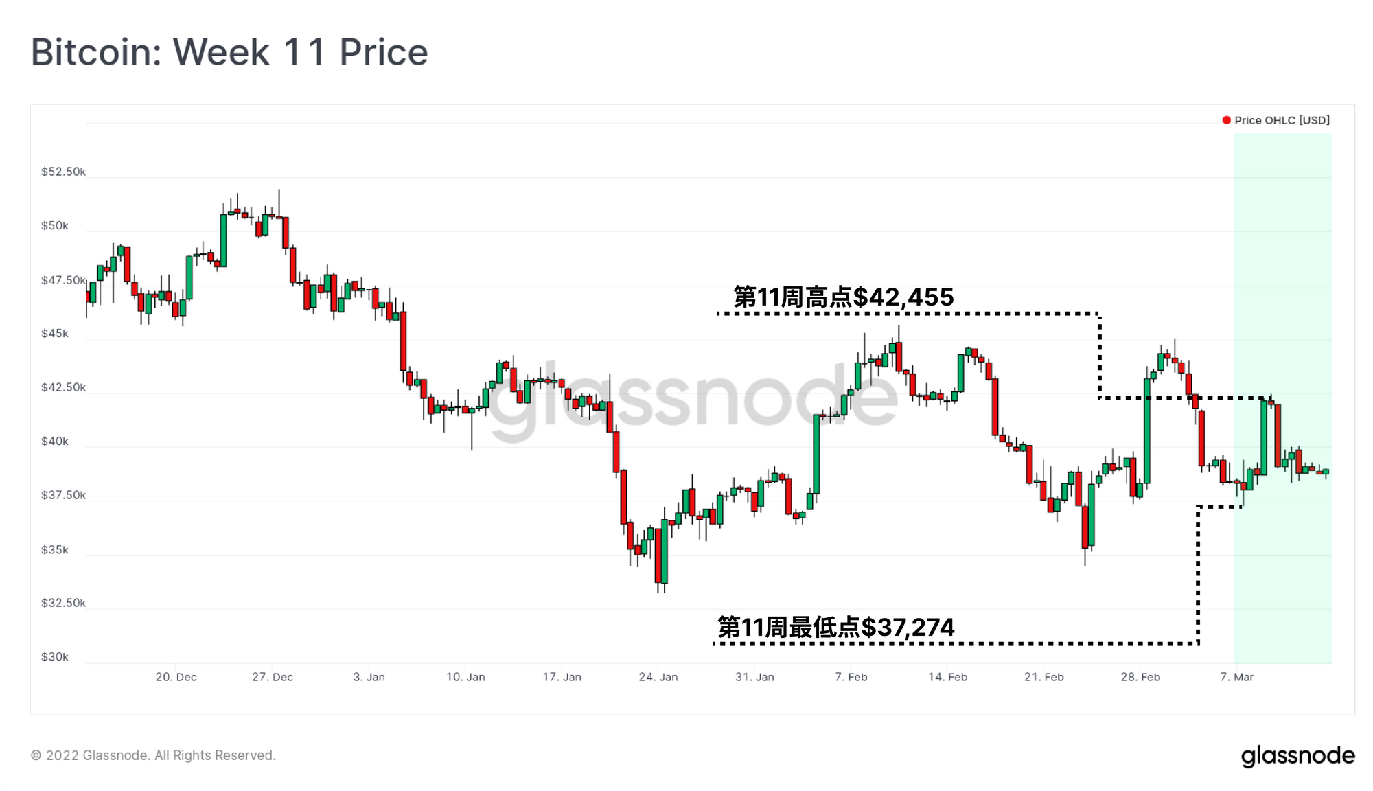 本周比特币价格继续横盘,压缩到37,274美元的低点和42,455美元的高点之间,波动范围越来越窄。正如上一版周报所指出的,在全球高度宏观和地缘政治不确定性的背景下,市场目前存在一种微妙的平衡。