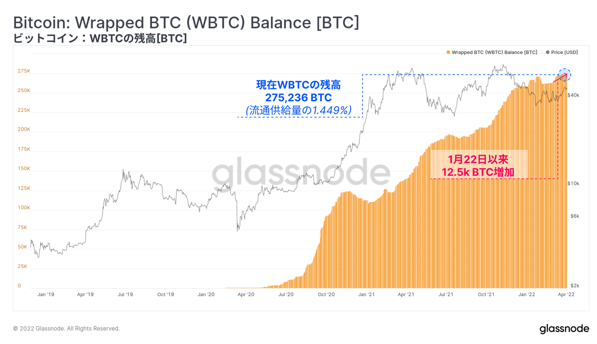 1月22日につけたマーケットの安値以降、WBTC供給量はさらに12.5k BTC増加し、混沌としたマクロおよび地政学的状況にもかかわらず、DeFiにおけるビットコイン担保への需要が高まっていることを示している。