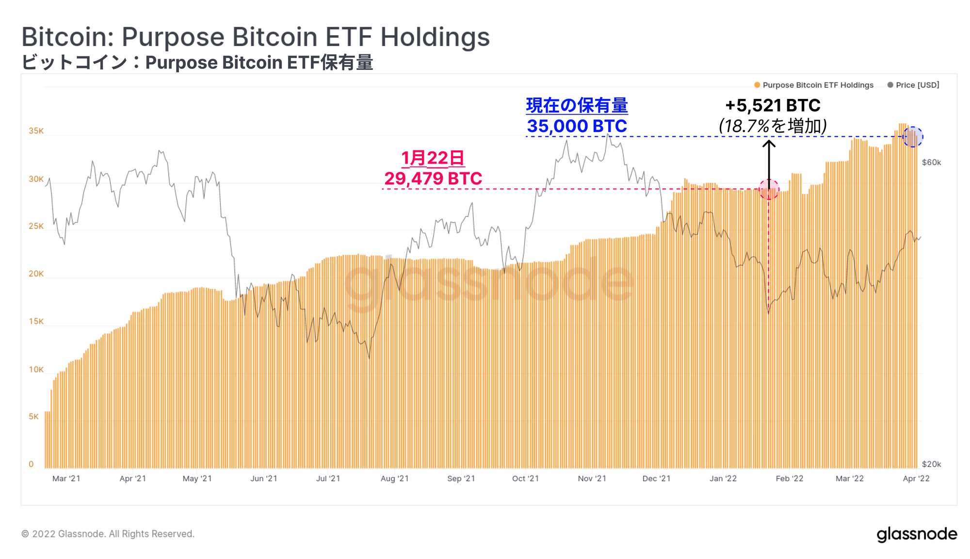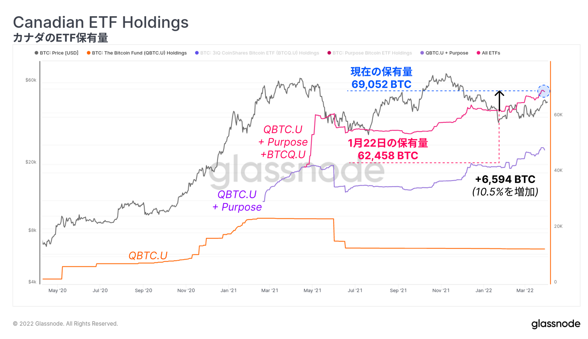 最も印象的なのは、ウクライナの紛争、商品価格の上昇と商品の不足、流動性の引き締めなどの逆風が多いにもかかわらず、カナダで取引できるETF商品全体においてビットコインの需要が全般的に増加している。