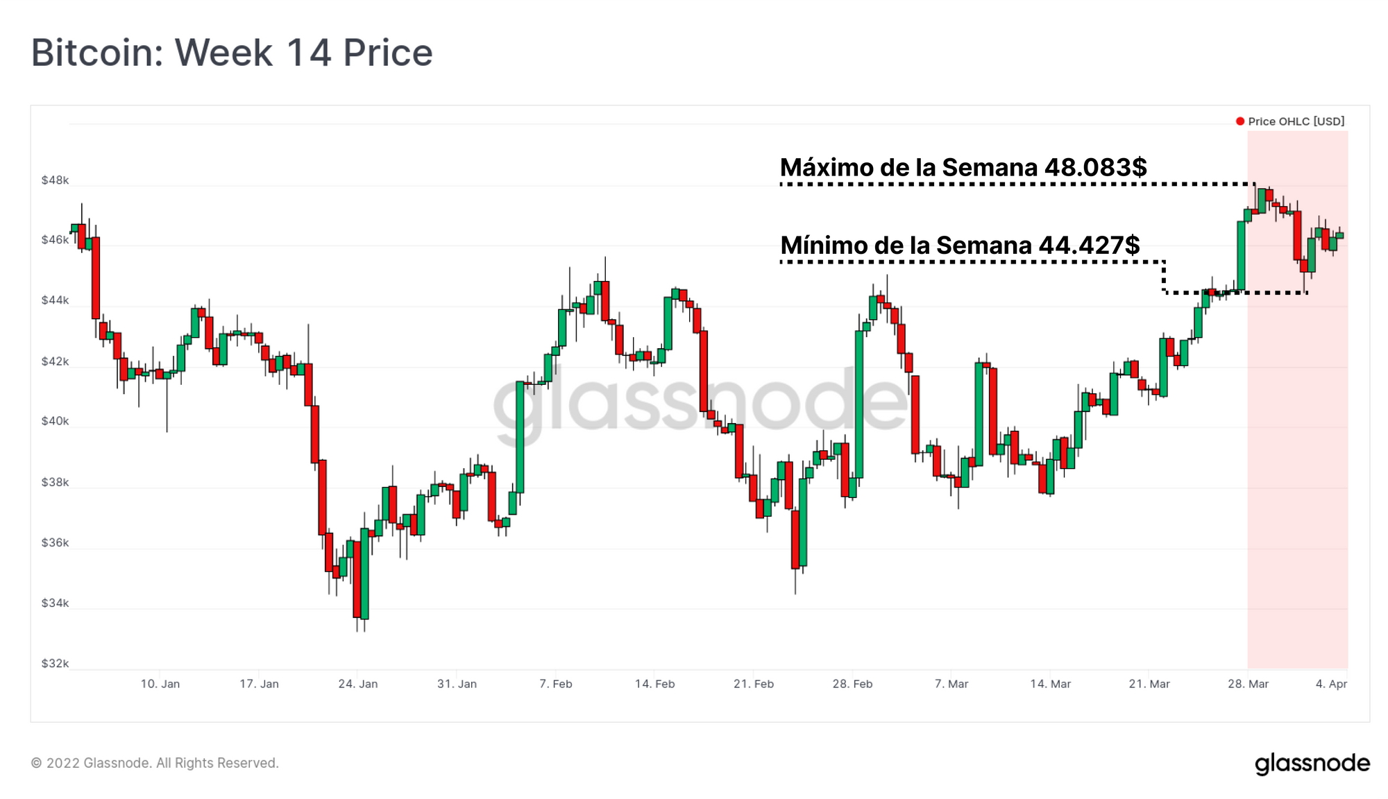 El mercado se ha mantenido dentro de un relativamente estrecho rango esta semana, con un mínimo de 44.427$, y un máximo de 48.083$, consolidando así después del reciente impulso alcista.