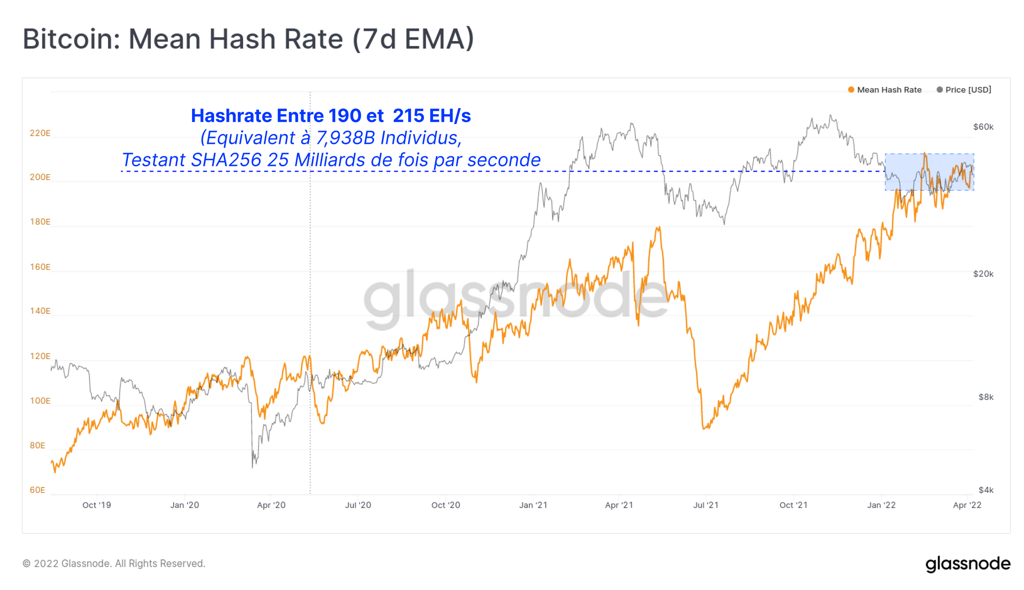 Cela équivaudrait à ce que les 7,938 milliards de personnes sur terre devinent chacune un hash SHA256 15,5 trillions de fois, toutes les 10 minutes, pour résoudre chaque bloc Bitcoin. C'est assez extraordinaire.