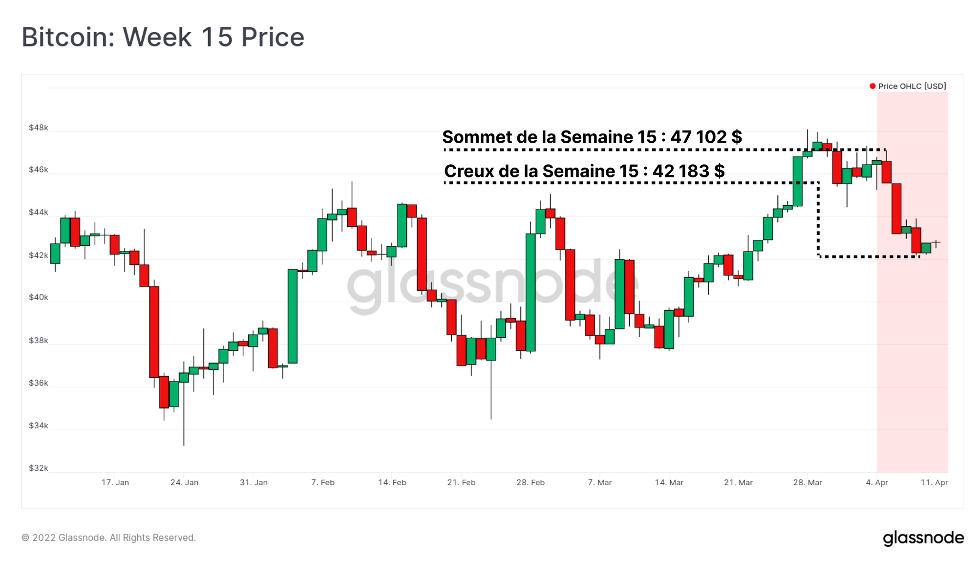 Le marché du bitcoin s'est négocié à la baisse cette semaine, après avoir atteint un sommet d'ouverture de 47 102 dollars, pour tomber à 42 183 dollars. Cette faiblesse du marché fait suite à une sortie temporaire du prix de la fourchette de consolidation établie depuis la mi-janvier.