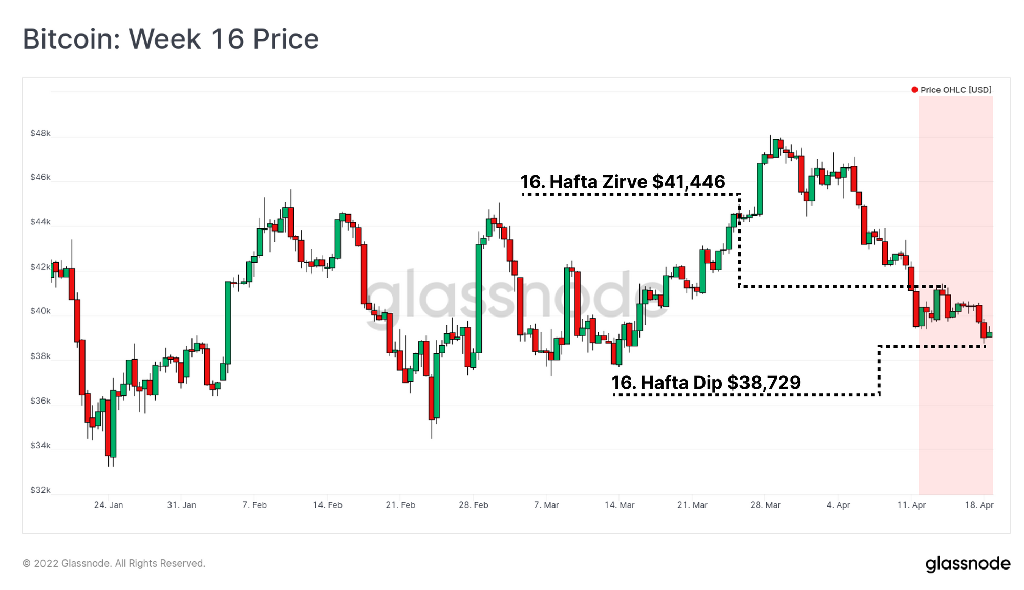 Bitcoin yatırımcıları, fiyatların kısa bir süre 40 bin doların altında işlem görmesiyle, Mart rallisini tamamen geri alarak zayıf bir hafta daha atlattı. Fiyatlar, 38.729$'lık yeni bir yerel dip noktası belirlemeden önce hafta başında 41.446$'a yükseldi.