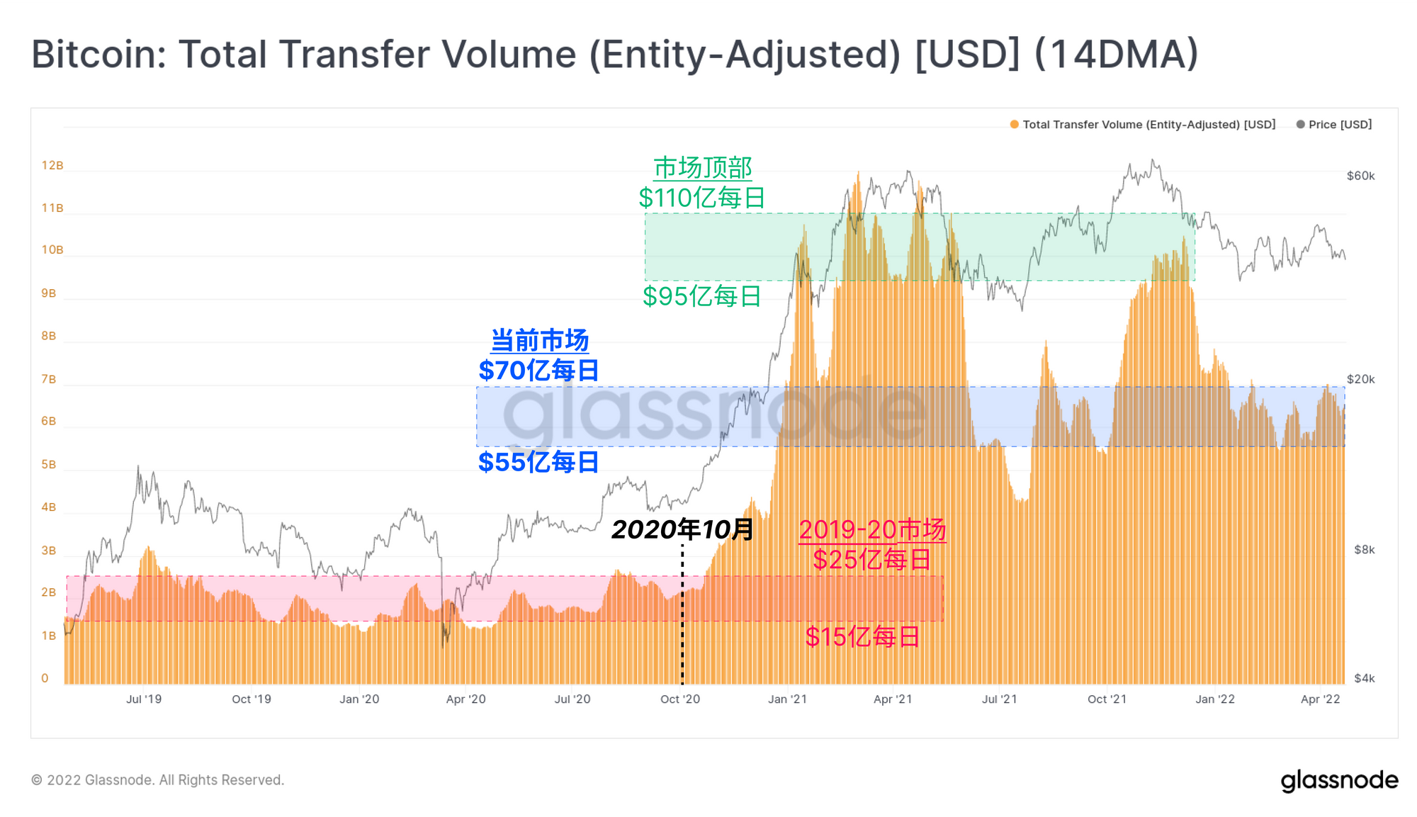 然而,结算量仍然明显高于整个2019-20年期间的约20亿美元每天,这表明网络利用率出现了净增长。