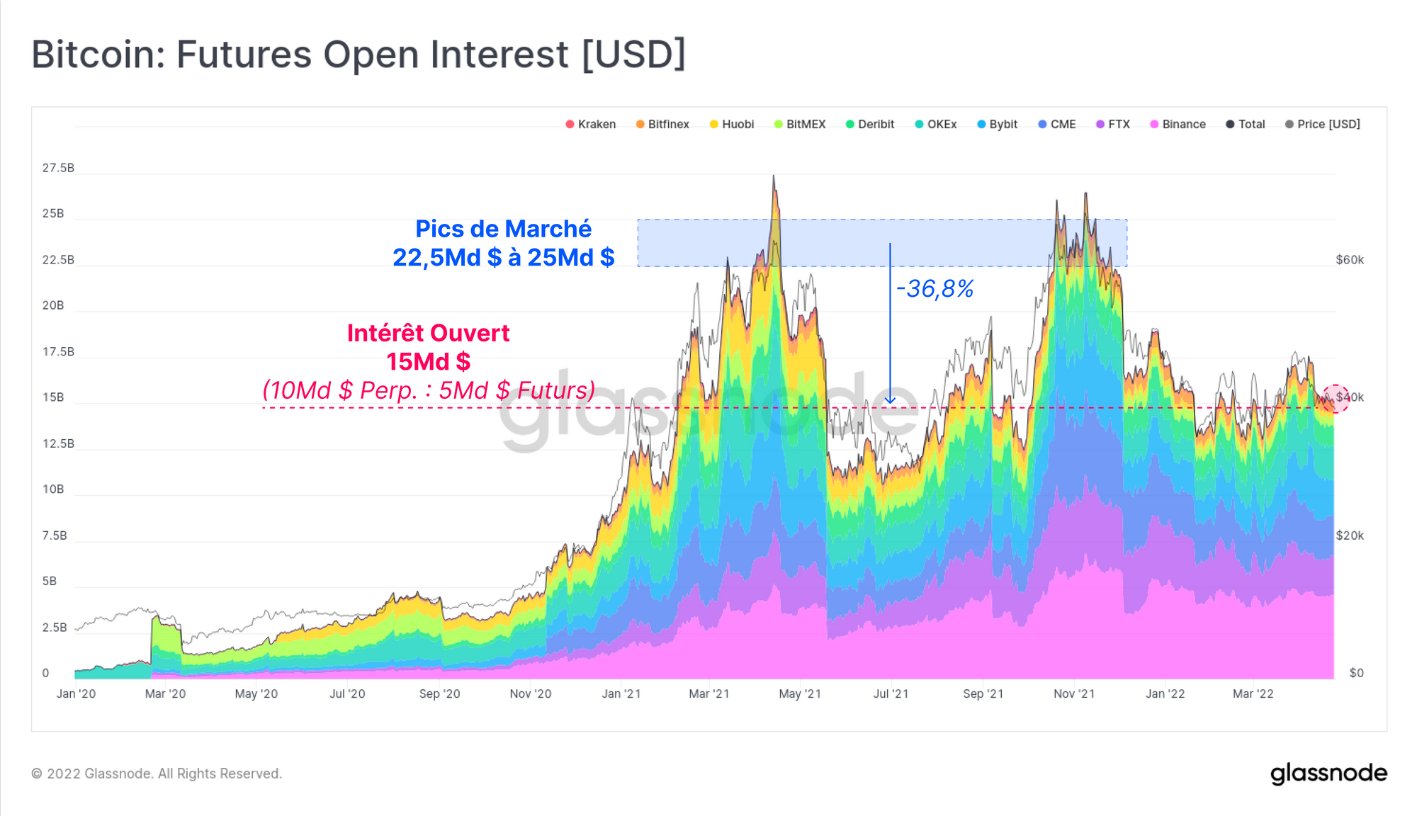 L'intérêt ouvert actuel est similaire aux niveaux observés au cours de la période de mai-septembre 2021 mais reste inférieur de 36,8 % aux sommets de plus de 22,5 milliards de dollars atteints en avril, puis en novembre.
