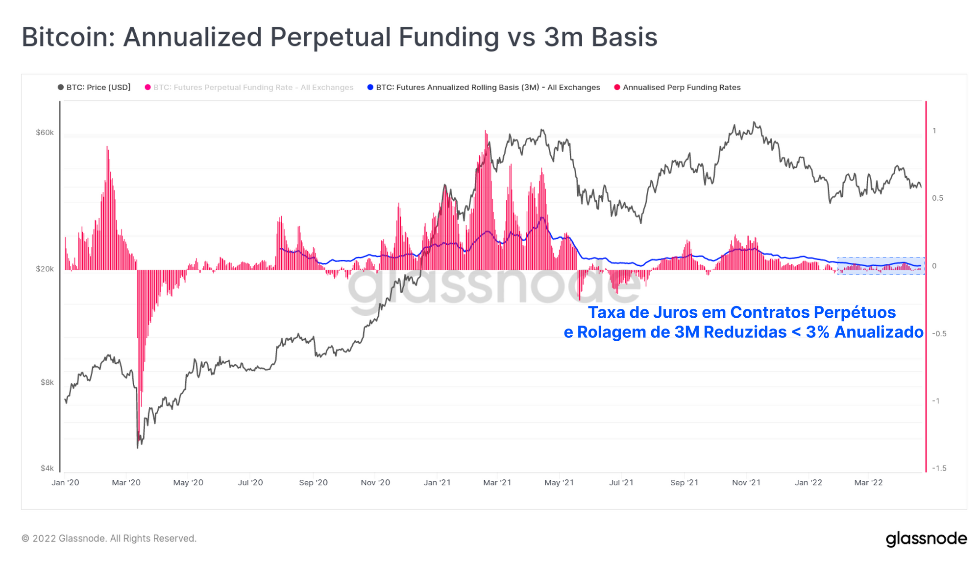 Se anualizarmos a taxa de financiamento perpétua e a compararmos com a base móvel de 3 meses disponível nos futuros com vencimento, podemos ver uma razão provável por trás do motivo pelo qual o capital está saindo dos mercados de Bitcoin.