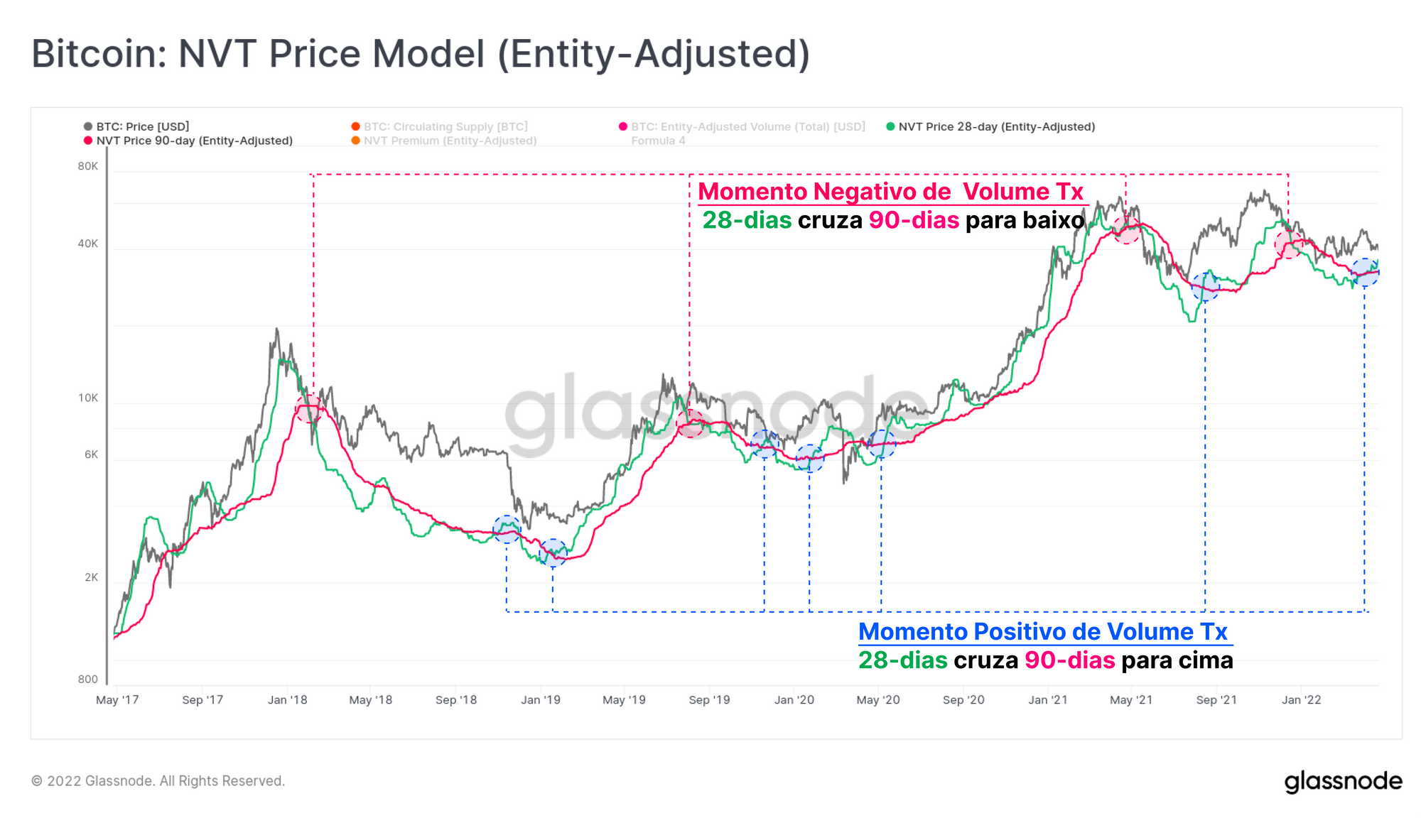 As avaliações implícitas do modelo de preço NVT permanecem na região de US$ 30 mil, o que indica que os touros têm seu trabalho facilitado. No entanto, esses modelos talvez estejam batendo no fundo e revertendo, o que é uma tendência que vale a pena ficar de olho nas próximas semanas.