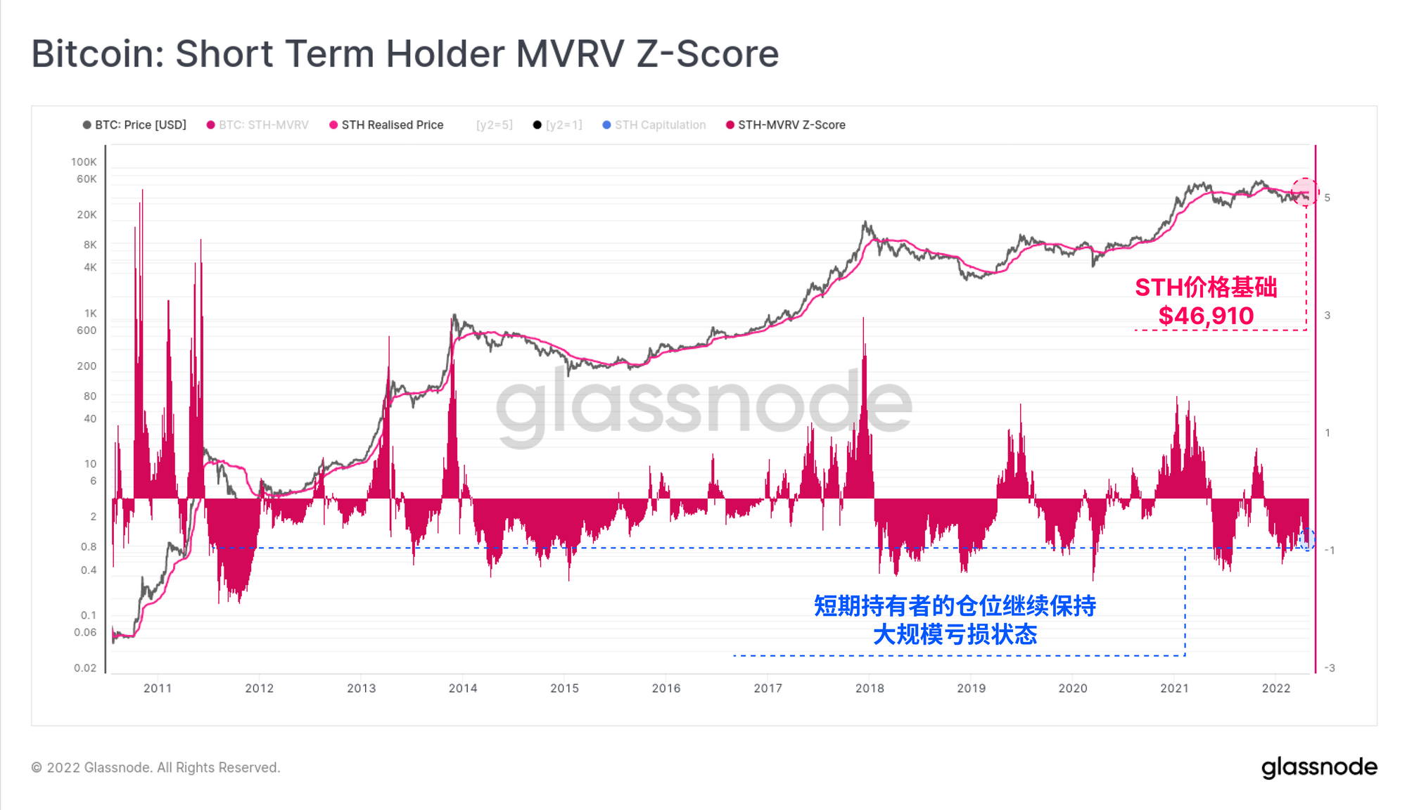 - STHs更严重的盈利能力并不罕见,但只发生在熊市中最严重的抛售期间(振荡器处于蓝线以下)。